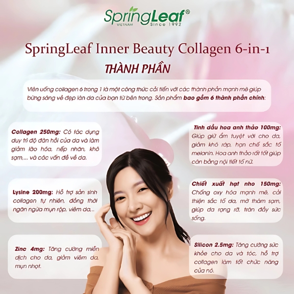 Giới thiệu về viên uống collagen SpringLeaf Inner Beauty Collagen 6-In-1