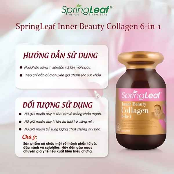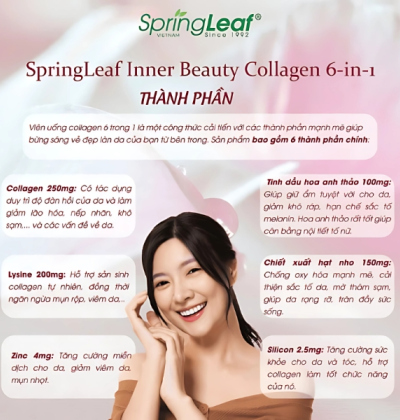 Hãy cùng khám phá chi tiết về sản phẩm này để hiểu vì sao SpringLeaf Inner Beauty Collagen 6-In-1 là bí quyết làm đẹp không thể thiếu của phái đẹp!
