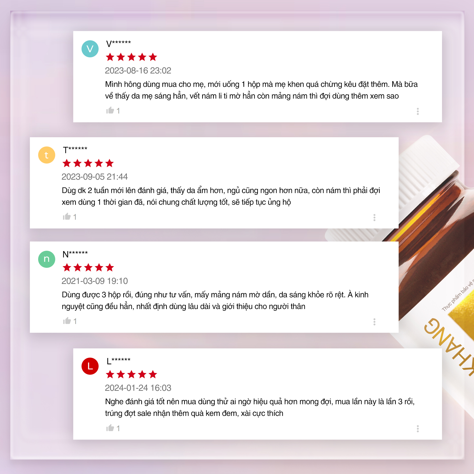 - Ổn định nội tiết tố, giải quyết nguyên nhân nám bên trong, đồng thời giúp cải thiện vấn đề sinh lý, vóc dáng