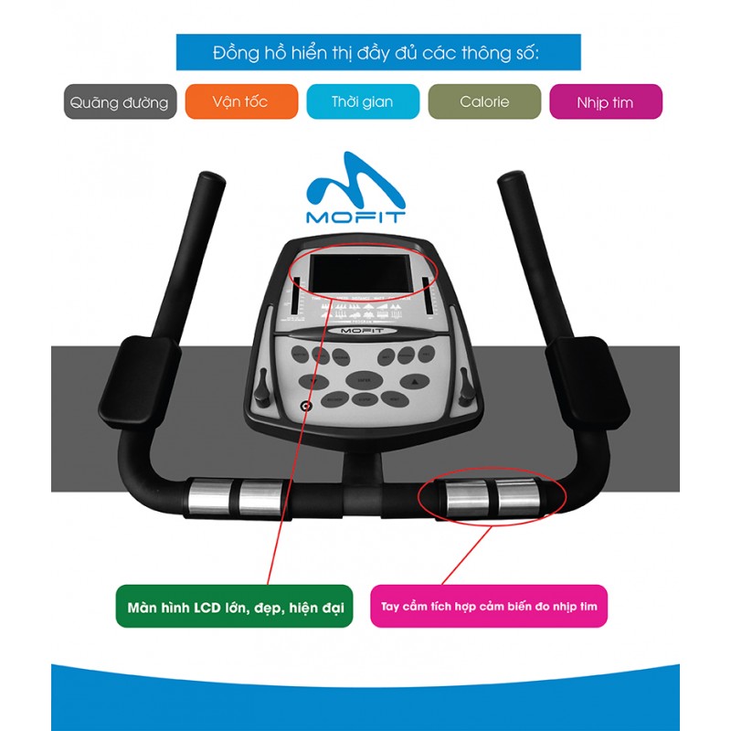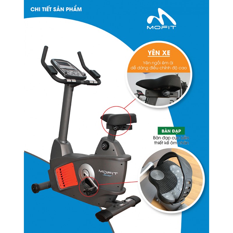Yên xe được thiết kế êm ái, có thể điều chỉnh độ cao linh hoạt để phù hợp với nhiều vóc dáng khác nhau. Tay cầm chắc chắn, bọc chống trượt, hỗ trợ người tập giữ tư thế đúng trong suốt quá trình luyện tập.