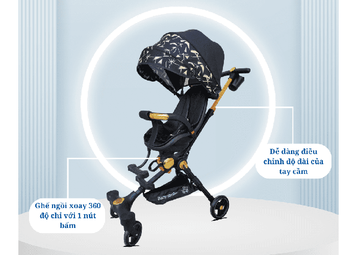 – Thiết kế xe đẩy 2 chiều, dễ dàng xoay trước hoặc sau chỉ với 1 nút bấm