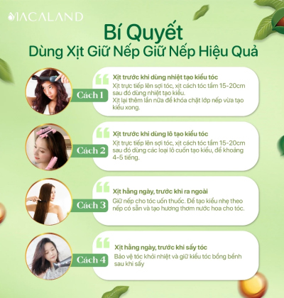 - Bước 4: Sau khi tạo kiểu xong, xịt lại một lần nữa để cố định nếp tóc và giữ nếp tốt hơn
