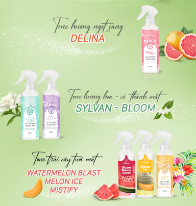 XỊT THƠM QUẦN ÁO SYLVAN (cải tiến lưu hương từ mùi VETIVER): Tone hoa cỏ nhẹ nhàng - hương hoa cỏ bài kết hợp cùng các loài hoa cỏ thơm ngát cùng tinh dầu gỗ hồng, giúp quần áo lưu hương hoa dịu nhẹ, dễ chịu.