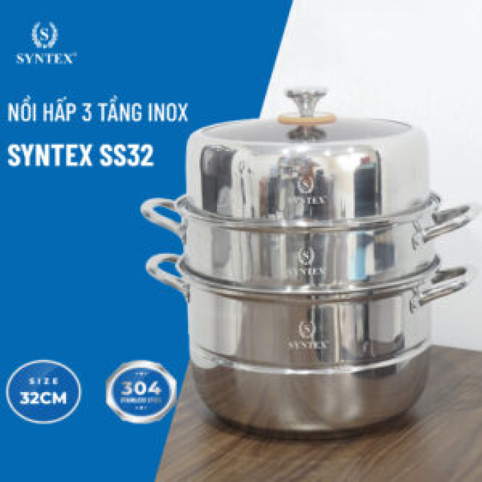 Nồi hấp 3 tầng Syntex SS32 - Hấp cách thủy, hầm, luộc, nấu lẩu.
