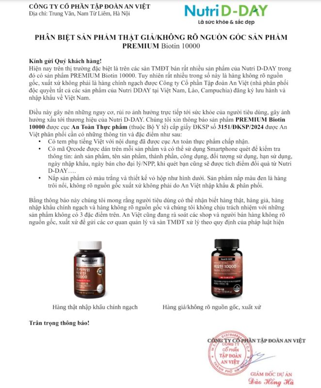Hiện nay trên thị trường đặc biệt là trên các sàn TMĐT bán rất nhiều sản phẩm của Nutri D-DAY trong đó có sản phẩm PREMIUM Biotin 10000.