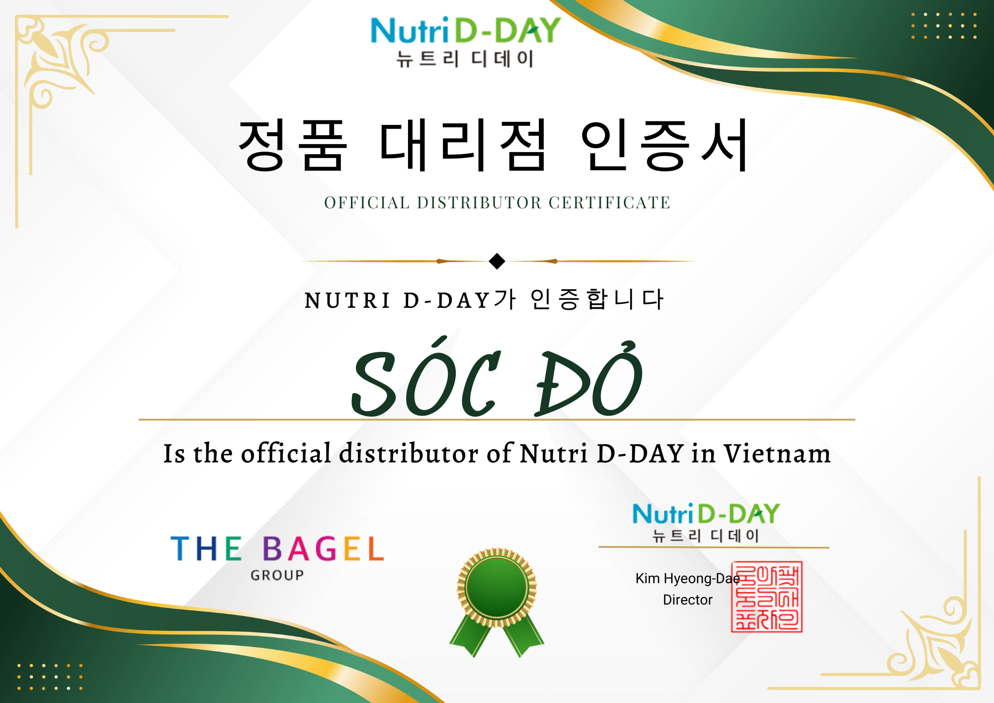Giấy chứng nhận ủy quyền Sóc Đỏ - doanh nghiệp phân phối chính hãng của Nutri D-Day