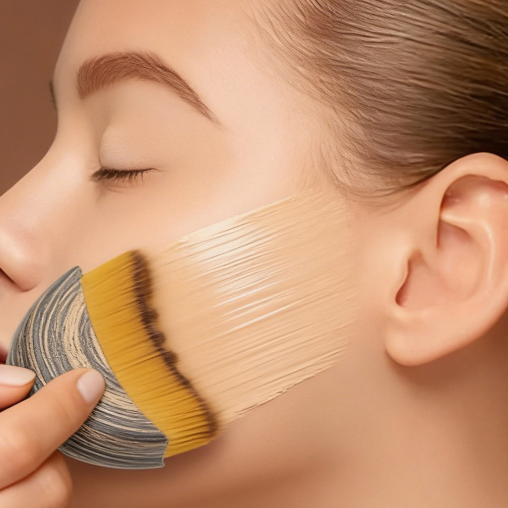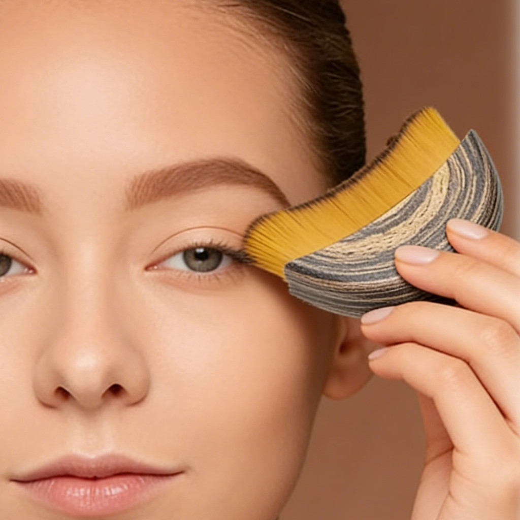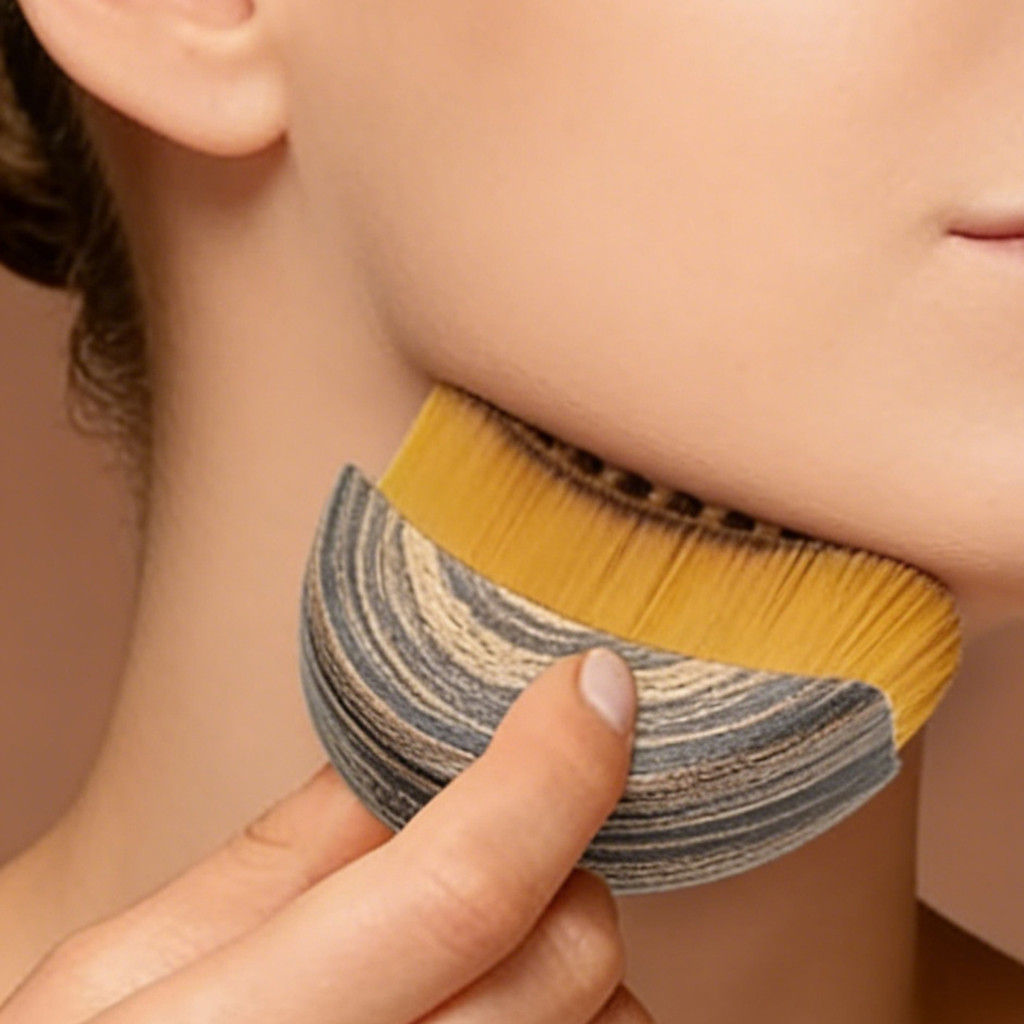 Bàn chải nền mặt trăng lưỡi liềm 2 trong 1 Bàn chải Massage mặt cho mặt cổ mắt Contour Dụng cụ chăm sóc da Lông tổng hợp mềm Hoàn hảo cho trang điểm dạng bột kem dạng lỏng