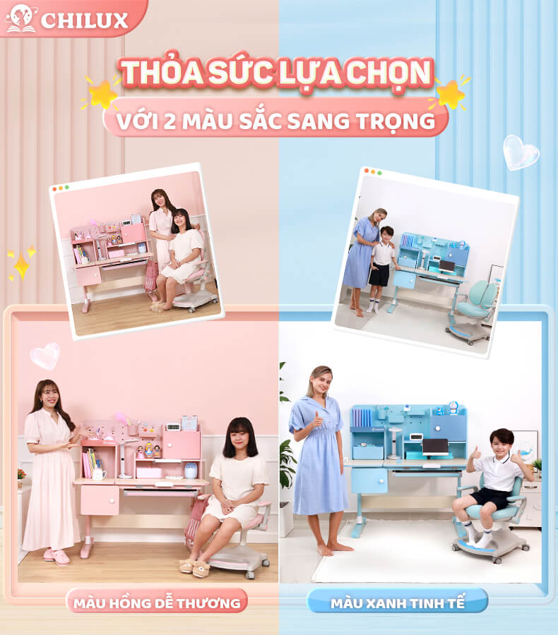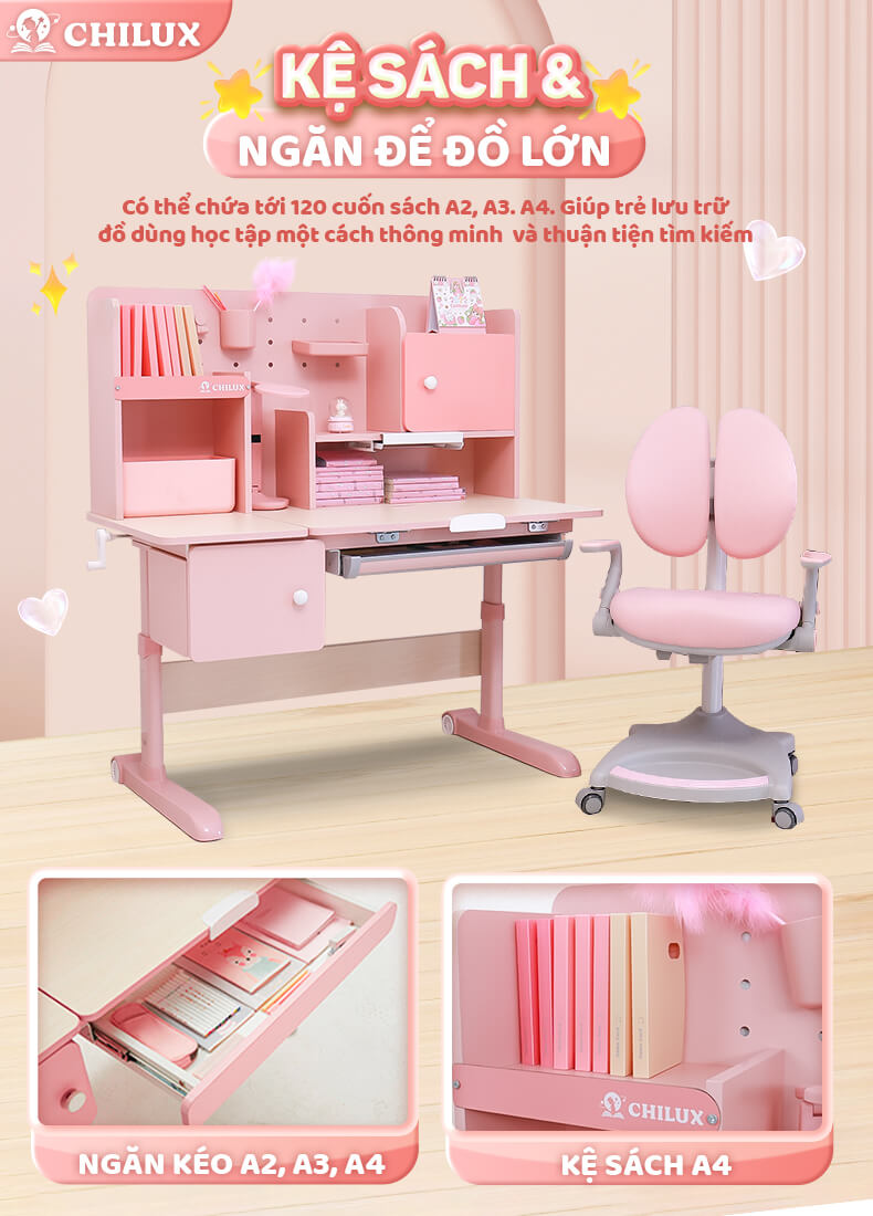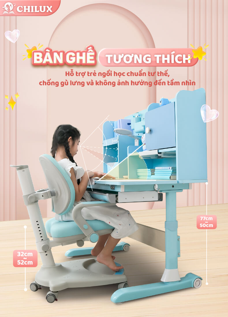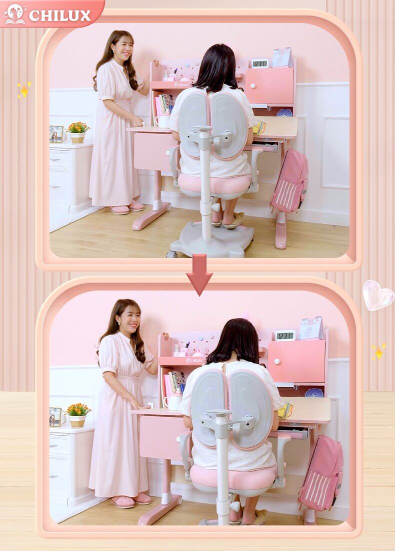 + Bàn học Chilux có thể điều chỉnh chiều cao kết hợp điều chỉnh ghế