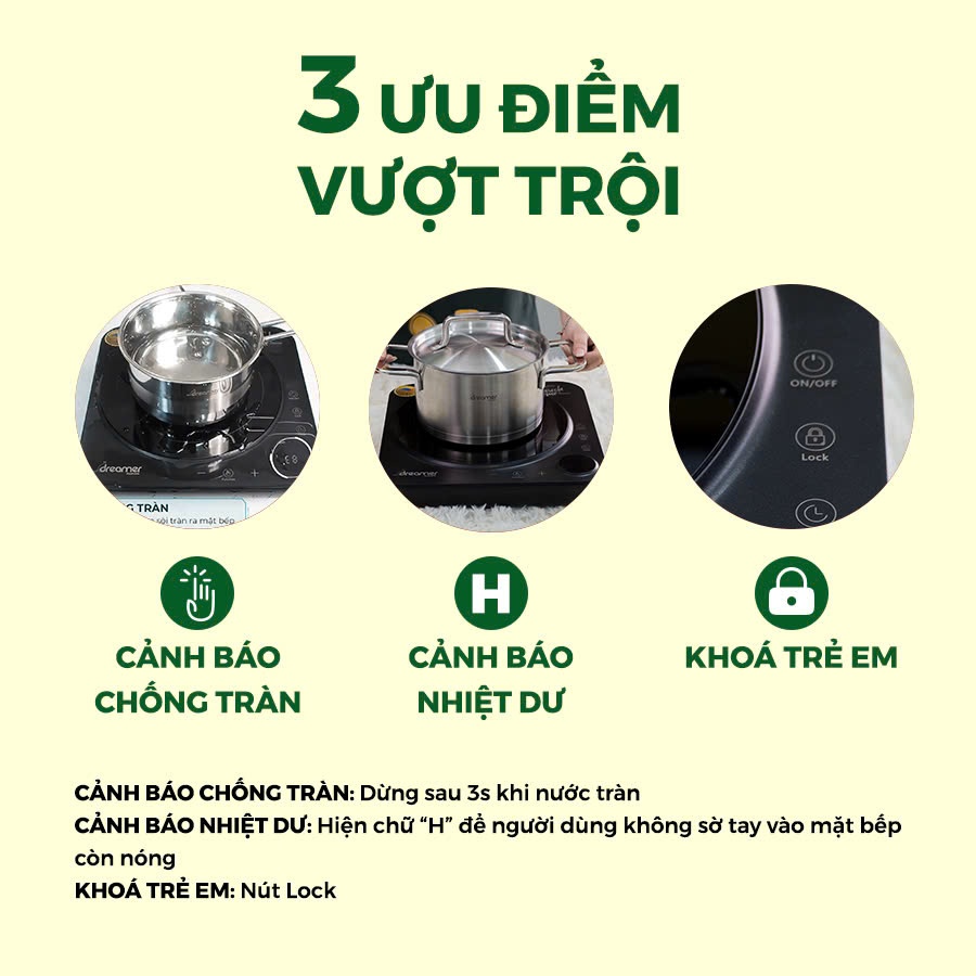 Bếp Từ Đơn Dreamer DC-IH01, Chống Tràn, Cảnh Báo Nhiệt Dư, Khóa Trẻ Em - Bảo Hành 12 Tháng