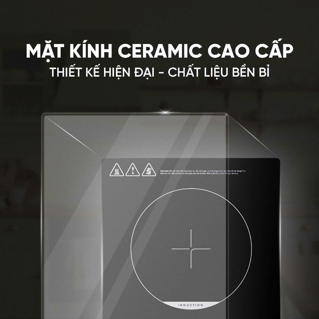 Thiết kế hiện đại – Chất liệu bền bỉ Bếp được trang bị mặt kính Ceramic cao cấp, có khả năng chịu lực và chịu nhiệt vượt trội, giúp chống trầy xước và dễ dàng vệ sinh sau mỗi lần sử dụng. Thiết kế tối giản, gọn gàng với bảng điều khiển cảm ứng cùng màn hình LED sắc nét, mang lại vẻ tinh tế cho mọi không gian bếp.