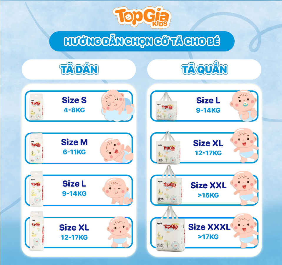 • Trẻ Có Da Nhạy Cảm: Với chất liệu an toàn và thiết kế đặc biệt, tã bỉm Topgiakids là lựa chọn lý tưởng cho bé có làn da nhạy cảm.