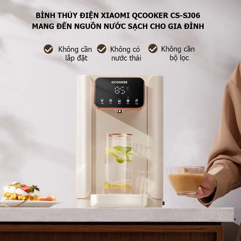 Bình thủy điện máy nước nóng lạnh để bàn Xiaomi Qcooker CS-SJ06 công suất 2200W dung tích 4L, 6 mức nhiệt, khóa an toàn