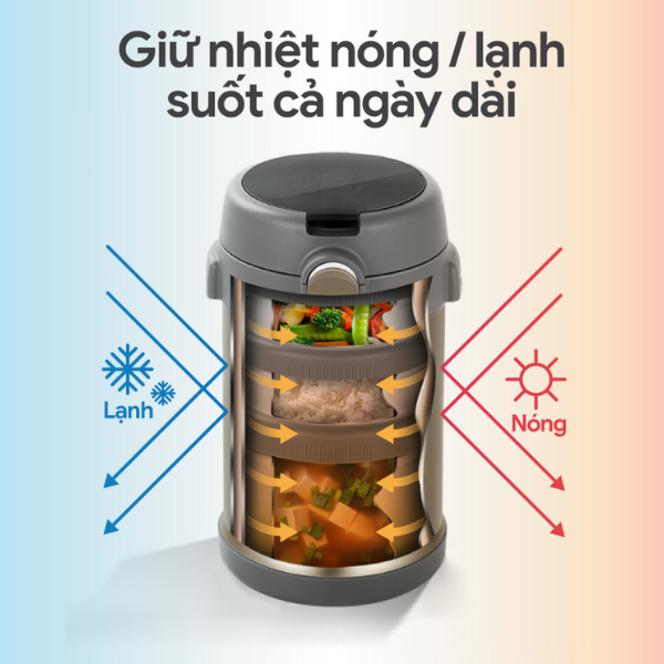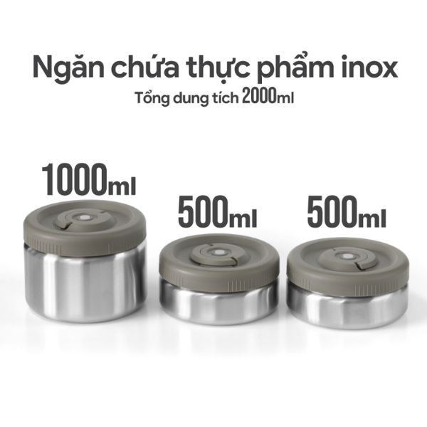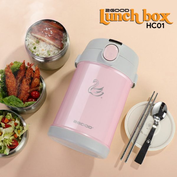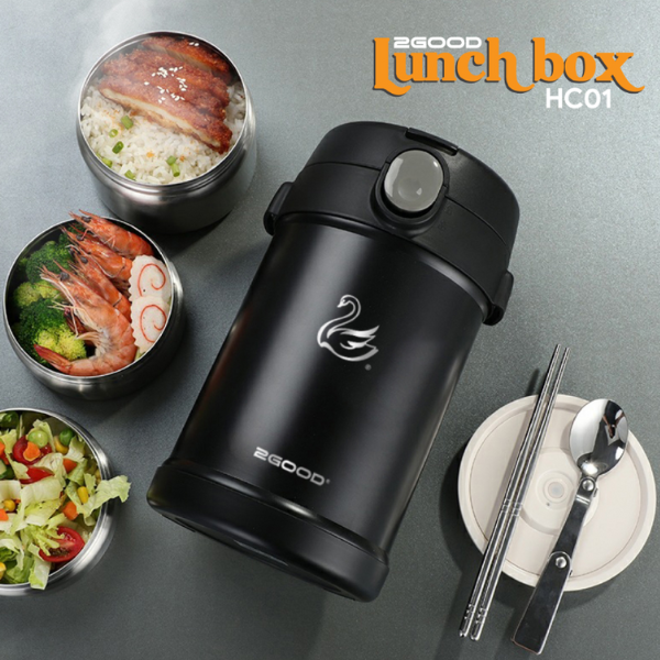 Bộ Hộp Cơm Giữ Nhiệt 2GOOD Lunch Box HC01 (2000ml) - Kèm Muỗng và Đũa Inox 304 ( Xanh đậm )