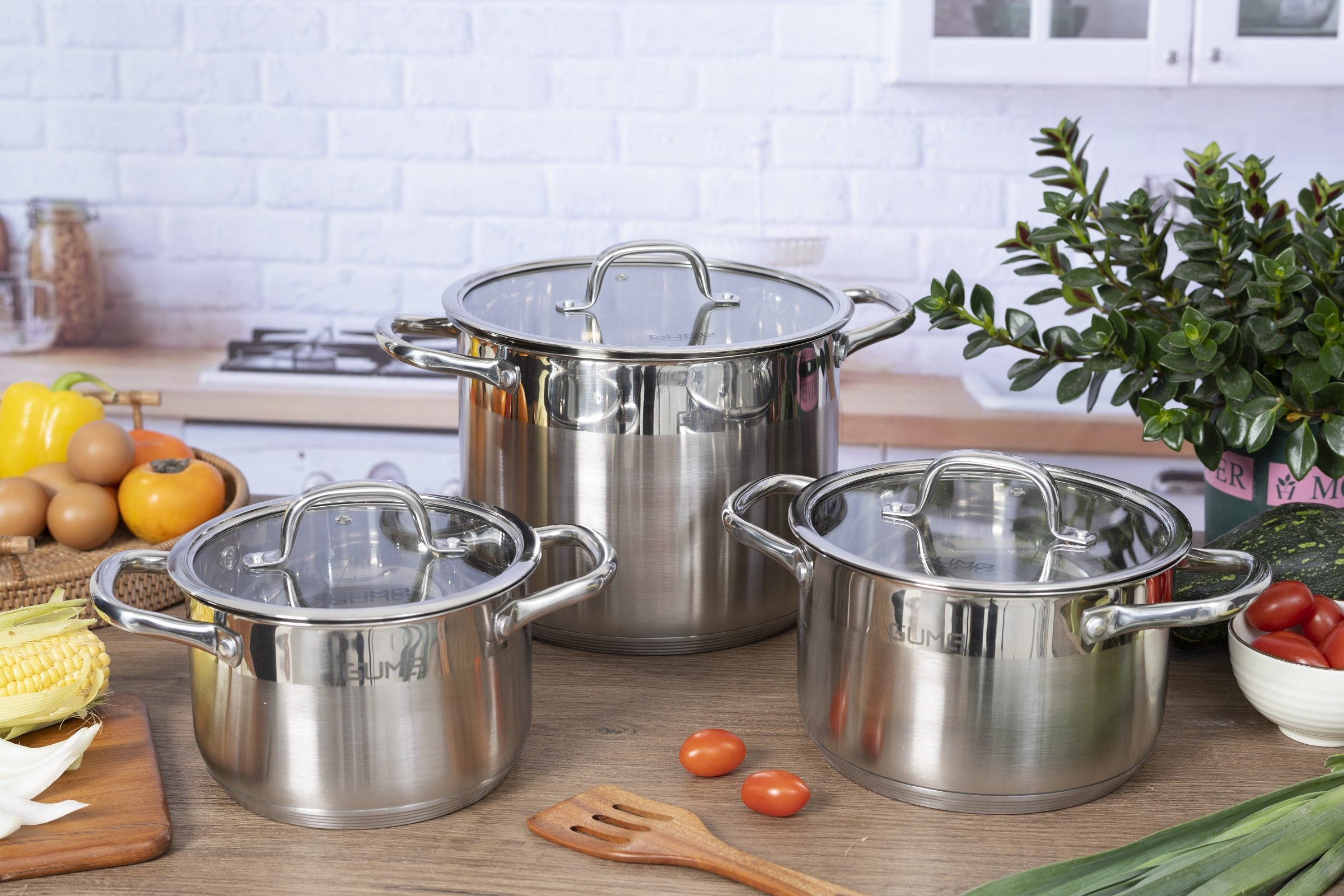 + Cấu tạo từ inox 304 giúp bộ nồi GUME luôn sáng bóng, không gỉ sét, không bị ăn mòn.