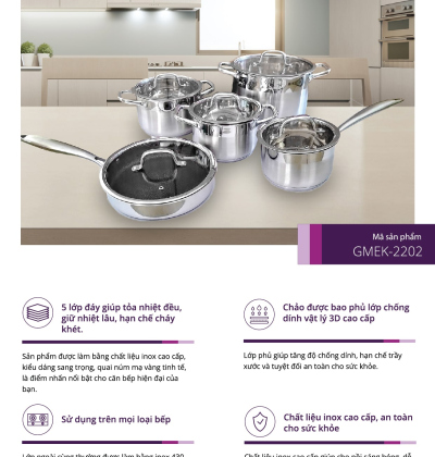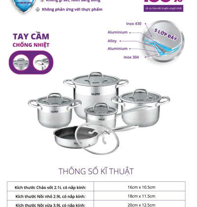 + Bộ nồi 5 món đều đi kèm với nắp đậy nên người sử dụng có thể dễ dàng sử dụng, giữ nhiệt, chống bắn.