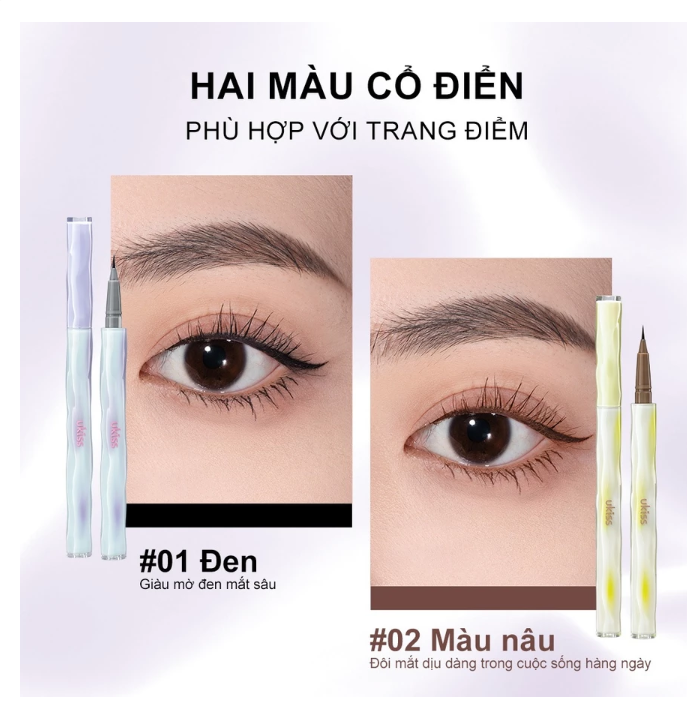 Bảng màu tinh tế phù hợp mọi tông da: Đen Tuyệt Đối cho phong cách sắc sảo, quyến rũ; Nâu Cà Phê mang vẻ tự nhiên, dịu dàng, phù hợp makeup hàng ngày hoặc mắt một mí.