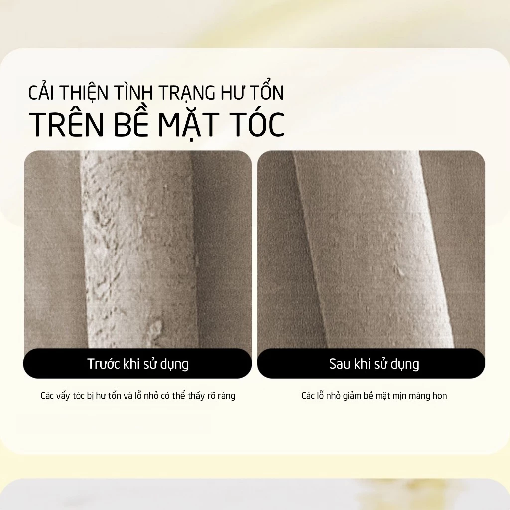 Thành phần chi tiết Keratin giúp phục hồi lớp sừng và tăng độ chắc khỏe của sợi tóc Protein bổ sung dinh dưỡng và tăng độ mềm mượt Chiết xuất thực vật dưỡng tóc Dưỡng chất phục hồi tóc hư tổn Không chứa paraben và chất gây kích ứng phổ biến