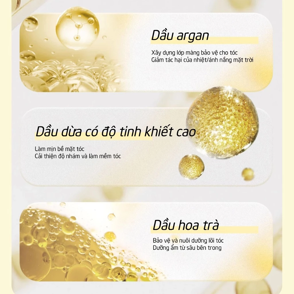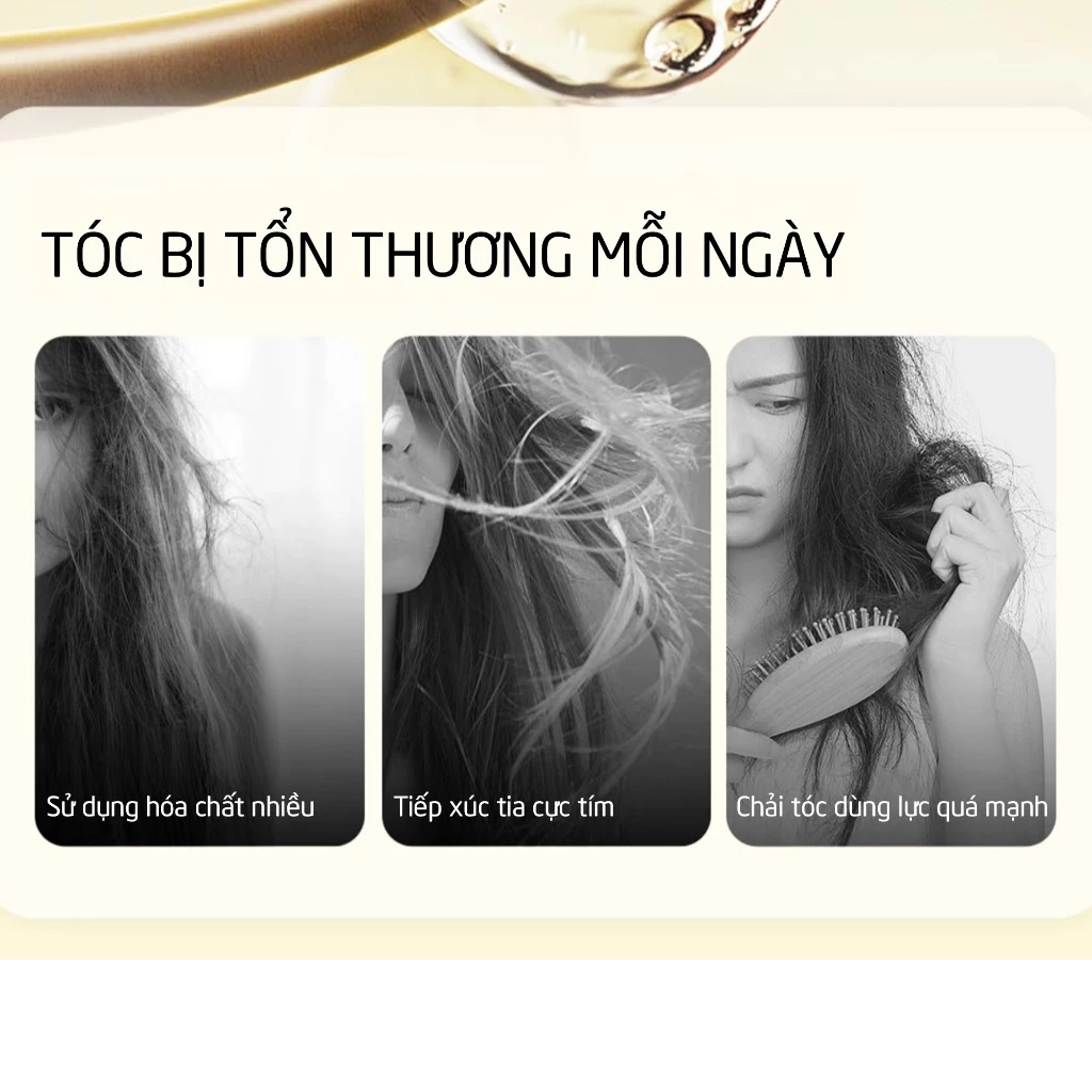 yếu, tóc hư tổn do hóa chất Giảm gãy rụng và giúp tóc dày khỏe hơn Tăng độ bóng mượt và khả năng vào nếp Dưỡng tóc sâu, giữ độ ẩm lâu hơn Làm sạch nhẹ nhàng, giữ da đầu thông thoáng Hỗ trợ phục hồi cấu trúc tóc, giảm chẻ ngọn
