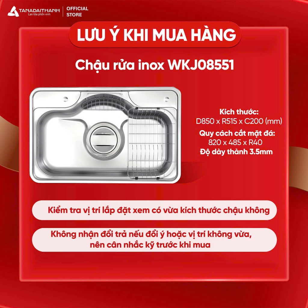 1. ĐẶC ĐIỂM NỔI BẬT Thiết kế tinh tế – Kết hợp hoàn hảo giữa công năng và thẩm mỹ Chậu rửa Wonang WKJ08551 gây ấn tượng mạnh bởi ngôn ngữ thiết kế tối giản, hiện đại, các đường nét vuông vức nhưng mềm mại, mang đến cảm giác tinh gọn, sạch sẽ. Không chỉ là một thiết bị nhà bếp, Wonang còn là điểm nhấn nội thất giúp nâng tầm không gian bếp, đặc biệt phù hợp với các căn hộ cao cấp, nhà phố hiện đại và biệt thự sang trọng. Chất liệu thép không gỉ POSCO 304 nguyên khối – Bền bỉ và an toàn tuyệt đối Chậu rửa Wonang WKJ08551được chế tạo từ Inox POSCO 304 nguyên khối cao cấp, nhập khẩu trực tiếp từ Hàn Quốc – loại vật liệu nổi bật với đặc tính: Chống oxy hóa và ăn mòn cực tốt, phù hợp với môi trường nước và độ ẩm cao. Không nhiễm từ, an toàn tuyệt đối khi tiếp xúc với thực phẩm, đạt tiêu chuẩn dùng trong thiết bị y tế và thực phẩm. Tuổi thọ vượt trội so với các dòng chậu inox thông thường Đây chính là yếu tố then chốt giúp chậu rửa Wonang giữ độ bền sáng bóng trong suốt nhiều năm sử dụng, không hoen gỉ, không ố vàng. Nhập khẩu nguyên chiếc từ Hàn Quốc – Hoàn thiện tinh xảo Sản phẩm được nhập khẩu trực tiếp từ Hàn Quốc, tuân thủ nghiêm ngặt các tiêu chuẩn chất lượng quốc tế. Quá trình sản xuất hiện đại kết hợp với độ chính xác trong từng chi tiết nhỏ – từ mối hàn, góc bo cạnh đến xử lý bề mặt – mang lại tính thẩm mỹ cao và độ bền lâu dài cho người dùng. Bộ thoát nước lớn – Thoát nhanh, chống tắc, dễ vệ sinh Hệ thống thoát nước thông minh của chậu Wonang được thiết kế: Miệng thoát lớn, dẫn nước nhanh chóng – hạn chế tối đa đọng nước. Bộ lọc rác tích hợp, dễ dàng tháo rửa – ngăn ngừa tắc nghẽn, giữ chậu sạch sẽ. Chất liệu cao cấp, bền chắc, không ố màu theo thời gian. Công nghệ chống ồn tiên tiến – Êm ái và sạch sẽ hơn mỗi ngày Wonang được tích hợp công nghệ chống ồn kép AL-Pad & PE-Pad: AL-Pad (Aluminum Pad): Lớp hợp kim hấp thụ rung chấn, giảm âm tối đa khi xả nước hoặc va chạm xoong nồi. PE-Pad (Polyethylene Pad): Giúp hạn chế ngưng tụ hơi nước ở đáy chậu, giữ khu vực tủ bếp luôn khô ráo, sạch sẽ. Nhờ đó, quá trình sử dụng trở nên êm ái, không gây tiếng ồn khó chịu, rất phù hợp với nhà ở cao tầng, căn hộ chung cư. 2. Thông Số Kỹ Thuật Chất liệu: Thép không gỉ POSCO 304 Kích thước tổng thể: Dài 850 x Rộng 515 x Cao 200 mm Độ dày: 0,6 mm Xuất xứ: Nhập khẩu nguyên chiếc từ Hàn Quốc Lưu ý sử dụng: Chỉ dùng cho nước sinh hoạt thông thường Không sử dụng với nước chứa hóa chất, axit, hay các dung dịch vô cơ và hữu cơ 3. Lợi Ích Khi Sử Dụng Tăng tuổi thọ và độ bền vượt trội: Nhờ chất liệu cao cấp và công nghệ hiện đại, sản phẩm đảm bảo sử dụng lâu dài mà vẫn giữ được vẻ đẹp ban đầu. Giảm tiếng ồn hiệu quả: Mang lại trải nghiệm êm ái, thoải mái khi sử dụng, đặc biệt trong không gian bếp mở. Dễ dàng vệ sinh – luôn sạch sẽ: Thiết kế thông minh giúp người dùng dễ dàng làm sạch, hạn chế vi khuẩn và mùi hôi. Tôn vinh không gian sống: Với thiết kế hiện đại, chậu rửa Wonang không chỉ là thiết bị chức năng mà còn là điểm nhấn thẩm mỹ cho căn bếp. CHẬU RỬA WONANG WKJ08551 – Sự lựa chọn hoàn hảo cho không gian bếp hiện đại! Nơi mọi chi tiết đều được chăm chút để mang đến sự tiện nghi, tinh tế và truyền cảm hứng mỗi ngày.