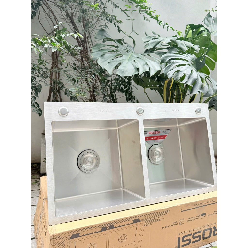 Chậu rửa Rossi RL320H LƯU Ý: CHẬU KHÔNG KÈM VÒI, KHÁCH HÀNG CHỦ ĐỘNG MUA VÒI KÈM CHẬU ĐỂ NHẬN DEAL GIÁ TỐT Được chế tạo từ chất liệu inox SUS 304 cao cấp có độ bền cao, chống ăn mòn, sáng bóng sang trọng kết hợp cùng thiết kế hiện đại, tỉ mỉ trong từng đường nét, chậu rửa cao cấp Rossi RL320H chính là sự lựa chọn hoàn hảo, nâng tầm không gian phòng bếp. Thông số kỹ thuật chậu rửa bát Rossi RL320H Tên sản phẩm: Chậu rửa cao cấp Rossi RL320H Mã sản phẩm: RL320H Kiểu chậu: Chậu rửa 2 hố Chất liệu: Inox SUS 304 Kích thước (Dài x rộng x sâu): 820 x 450 x 230 mm Độ dày: 3.0 x 0.8 mm (3.0 là độ dày của mặt chậu, còn 0.8 là độ dày lòng chậu)
