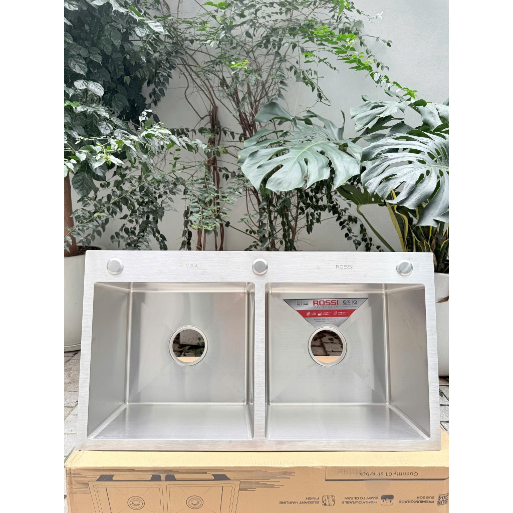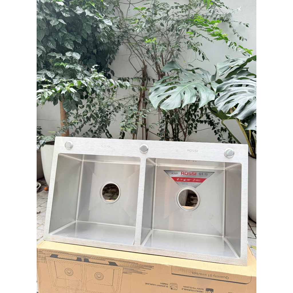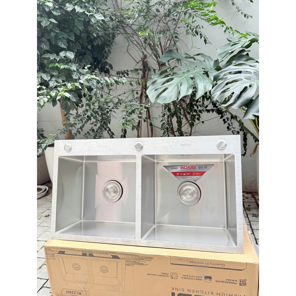 Chậu rửa Rossi RL320H LƯU Ý: CHẬU KHÔNG KÈM VÒI, KHÁCH HÀNG CHỦ ĐỘNG MUA VÒI KÈM CHẬU ĐỂ NHẬN DEAL GIÁ TỐT Được chế tạo từ chất liệu inox SUS 304 cao cấp có độ bền cao, chống ăn mòn, sáng bóng sang trọng kết hợp cùng thiết kế hiện đại, tỉ mỉ trong từng đường nét, chậu rửa cao cấp Rossi RL320H chính là sự lựa chọn hoàn hảo, nâng tầm không gian phòng bếp. Thông số kỹ thuật chậu rửa bát Rossi RL320H Tên sản phẩm: Chậu rửa cao cấp Rossi RL320H Mã sản phẩm: RL320H Kiểu chậu: Chậu rửa 2 hố Chất liệu: Inox SUS 304 Kích thước (Dài x rộng x sâu): 820 x 450 x 230 mm Độ dày: 3.0 x 0.8 mm (3.0 là độ dày của mặt chậu, còn 0.8 là độ dày lòng chậu)
