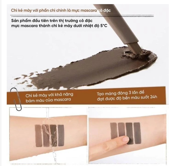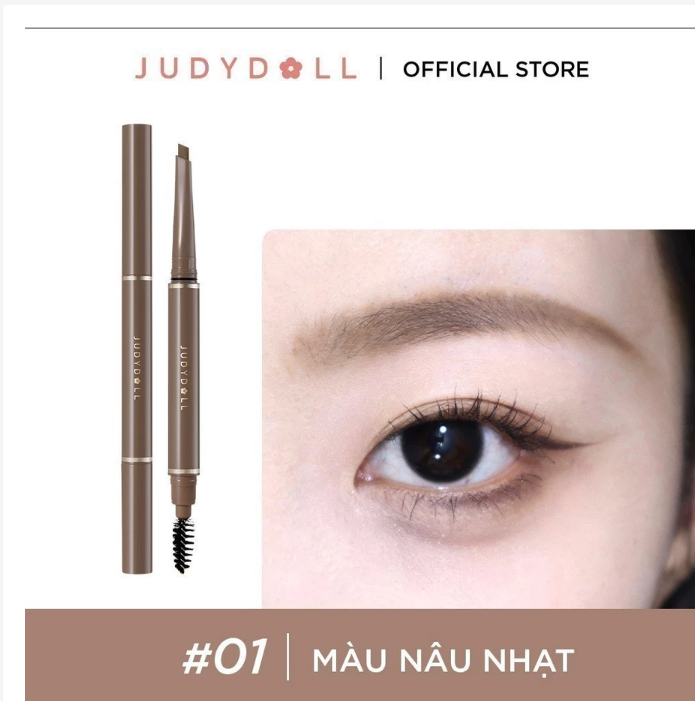 Thương hiệu Judydoll được biết đến với các sản phẩm mỹ phẩm an toàn, giá cả phải chăng và thiết kế hiện đại. Chì kẻ mày Long-Lasting Eyebrow Gel Pencil được sản xuất từ nguyên liệu cao cấp, không chứa paraben hay chất gây hại, đã qua kiểm nghiệm da liễu để đảm bảo an toàn cho da nhạy cảm quanh vùng mắt. Công nghệ đông đặc gel từ mực mascara ở nhiệt độ thấp 5 độ C, tạo màng đông ba lần giúp tăng độ bám màu cao, lên màu tự nhiên mà không vón cục hay bay bụi. Bảng màu đa dạng với các tông phù hợp da Á Đông, bao gồm #01 Light Brown nâu nhạt tự nhiên cho trang điểm hàng ngày, #02 Nâu Tro cho vẻ ngoài thanh lịch và #03 Xám Khói cho phong cách cá tính. Màu sắc lên da đều, không quá đậm, giúp tạo hình dáng chân mày rõ ràng nhưng vẫn mềm mại.