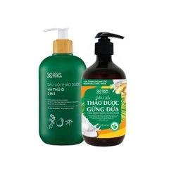 Combo Dầu Gội 2in1 Hà Thủ Ô 420g + Dầu Xả Gừng Dừa 440g - Thảo Dược Cỏ Cây Hoa Lá