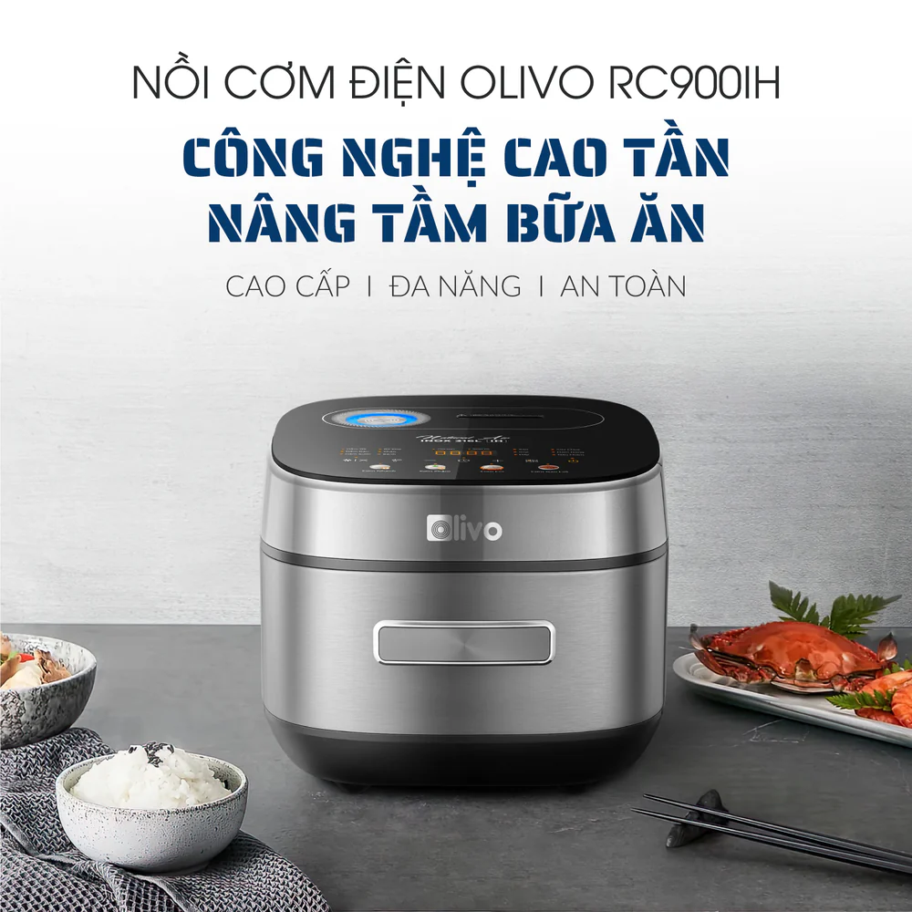 ƯU ĐIỂM VƯỢT TRỘI CỦA NỒI CƠM ĐIỆN CAO TẦN OLIVO RC900IHKhi nói đến nồi cơm điện, chúng ta không chỉ nghĩ đến một thiết bị nấu ăn thông thường, mà còn là người bạn đồng hành mang lại những bữa cơm ngon miệng, dinh dưỡng và trọn vẹn cho gia đình.Nồi cơm điện cao tần OLIVO RC900IH là sự lựa chọn hoàn hảo cho những ai mong muốn nâng tầm chất lượng bữa ăn gia đình. Với công nghệ hiện đại, thiết kế tinh tế và hàng loạt tính năng vượt trội, sản phẩm không chỉ mang lại sự tiện nghi mà còn đảm bảo sức khỏe và trải nghiệm nấu nướng hoàn hảo. Dưới đây là những ưu điểm nổi bật của