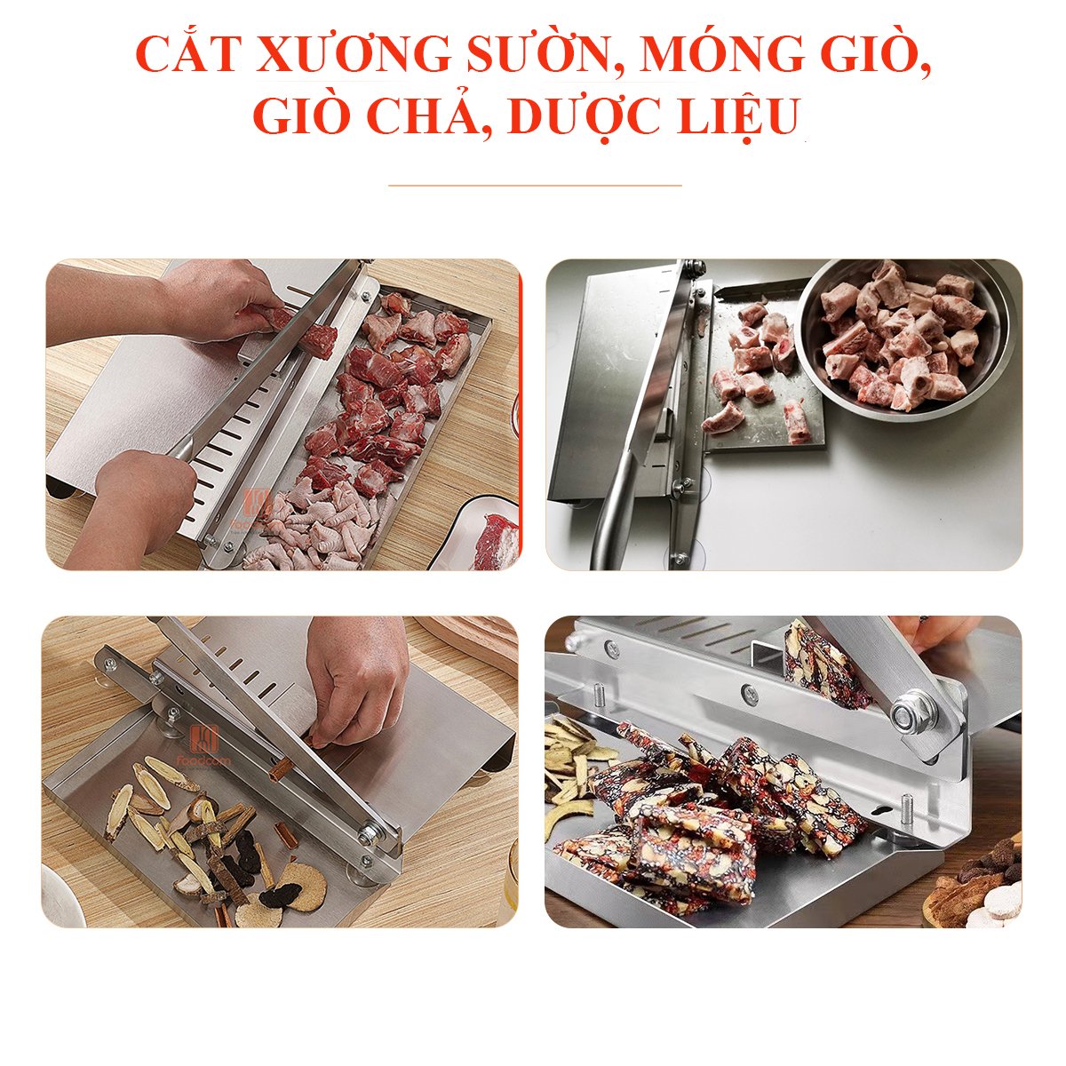 Ngoài ra trên mặt bàn thái còn có sự hỗ trợ của 1 khuôn chắn thông dụng có thể tháo rời. Khuôn chắn này sẽ giúp bạn thái cắt thực phẩm đông lạnh dễ dàng không sợ trơn trượt trong quá trình thái.