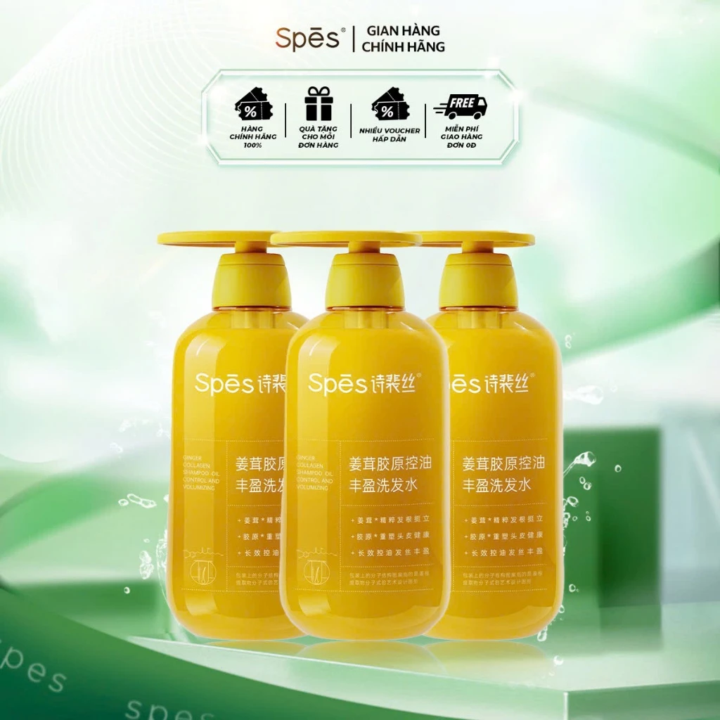 Dầu gội SPES Ginger Collagen Shampoo là dòng sản phẩm chăm sóc tóc kết hợp giữa chiết xuất gừng và collagen nhằm mang lại hiệu quả nổi bật trong việc giảm rụng tóc, hỗ trợ mọc tóc và tăng độ bồng bềnh. Chiết xuất gừng ấm giúp kích thích lưu thông máu dưới da đầu, từ đó nuôi dưỡng chân tóc chắc khỏe. Collagen giúp bổ sung độ đàn hồi cho sợi tóc, mang lại mái tóc mềm mượt và ít gãy rụng hơn. Sản phẩm phù hợp cho những người có da đầu dầu, tóc nhanh bết hoặc tóc mỏng khó giữ nếp. Công thức làm sạch nhẹ nhàng giúp loại bỏ dầu thừa, bụi bẩn mà vẫn giữ lại độ ẩm tự nhiên cho sợi tóc. Dung tích 200ml tiện lợi để mang theo khi cần di chuyển hoặc sử dụng thử trước khi mua bản lớn.