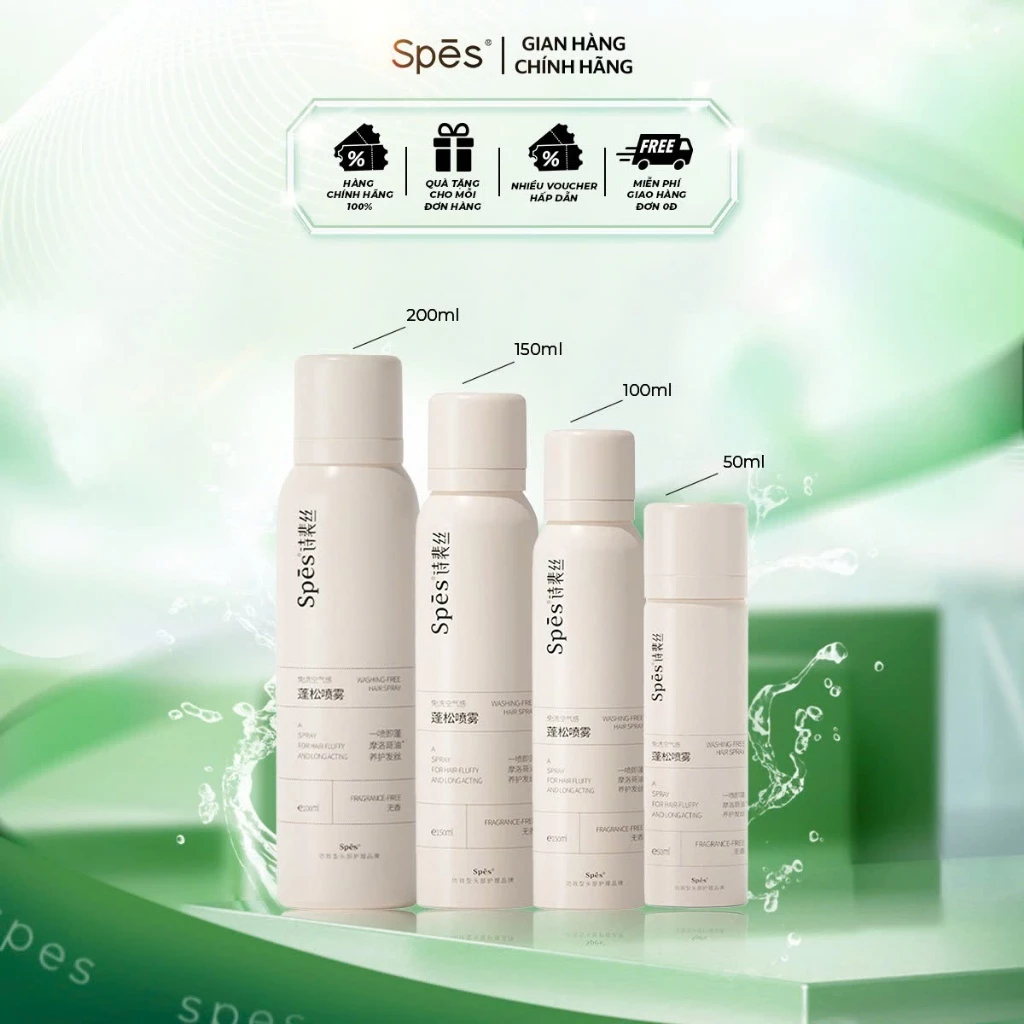 Dầu gội khô SPES dạng xịt không mùi là phiên bản dành cho người muốn sự sạch sẽ mà không cần mùi hương. Sản phẩm này phù hợp cho cả nam và nữ, đặc biệt phù hợp với người không muốn mùi hương lẫn với nước hoa hoặc gây khó chịu khi ở môi trường kín. Công thức hút dầu mạnh mẽ cùng công nghệ phun sương siêu mịn giúp bột làm sạch phân tán nhanh trên tóc, thấm hút bã nhờn ngay lập tức và mang lại mái tóc tơi nhẹ chỉ sau 30 giây. Thiết kế ba dung tích 50ml, 150ml và 200ml giúp người dùng linh hoạt lựa chọn tùy theo nhu cầu cá nhân.