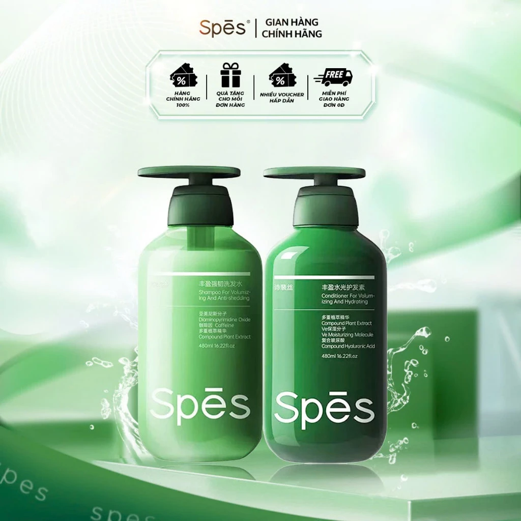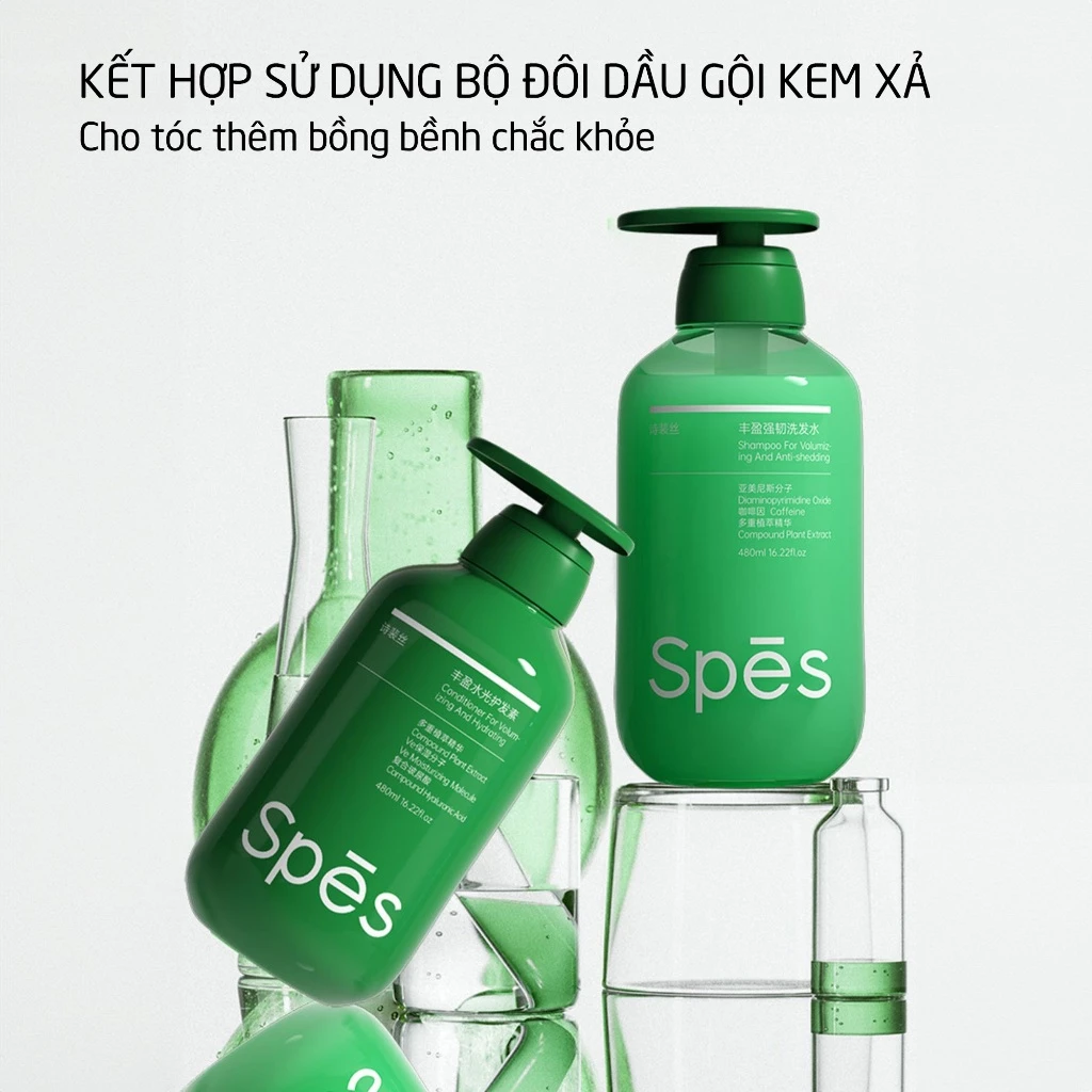 Dầu gội và dầu xả SPES chống rụng tóc và nuôi dưỡng mái tóc chắc khoẻ bồng bềnh 480ml.