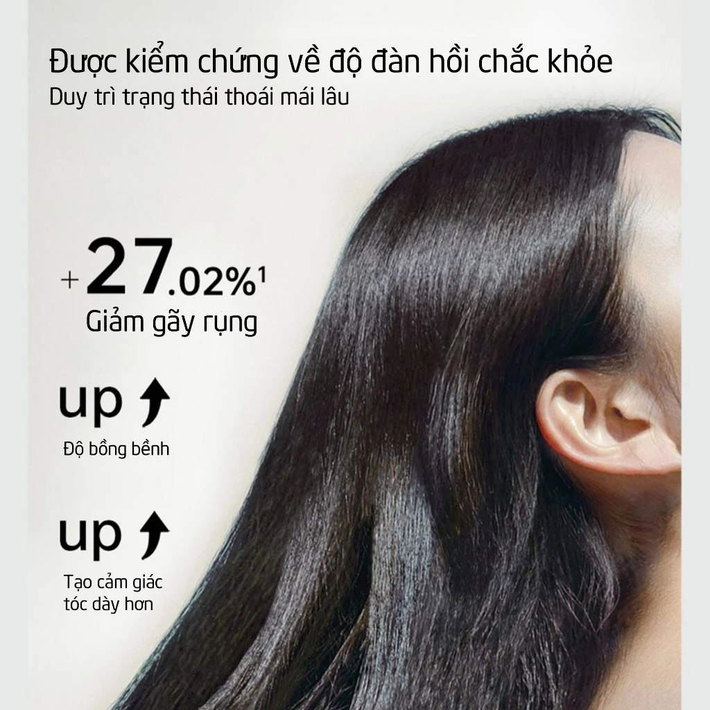 Ưu điểm nổi bật – Công dụng Giảm rụng tóc khi sử dụng đều Tăng độ đàn hồi giúp tóc khỏe hơn Làm phồng tóc tự nhiên, giảm xẹp tóc Nuôi dưỡng chân tóc và phục hồi độ mềm mượt Cải thiện tình trạng gãy rụng khi chải hoặc sấy Giữ da đầu sạch thoáng suốt nhiều giờ