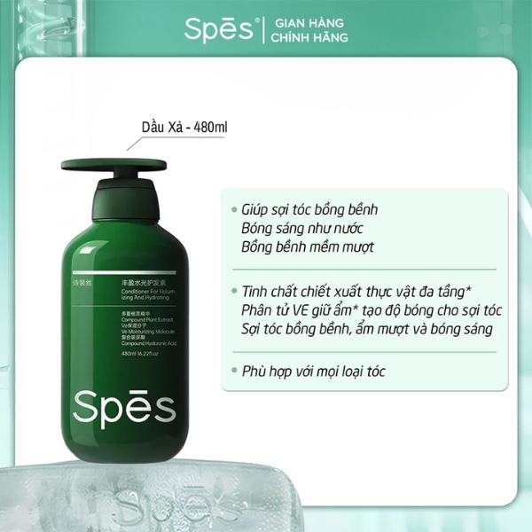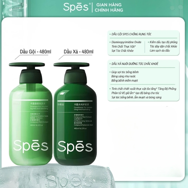DẦU GỘI SPES ĐƯỢC LÀM TỪ CÁC THÀNH PHẦN TỰ NHIÊN GIÚP CHĂM SÓC VÀ KÍCH THÍCH MỌC TÓC, ĐỒNG THỜI CẢI THIỆN LƯỢNG DẦU THỪA TRÊN DA ĐẦU ĐỂ MÁI TÓC TRỞ NÊN CHẮC KHỎE VÀ SẠCH SẼ SUỔT CẢ NGÀY. DẦU XẢ SPES VE GIÚP NUÔI DƯỠNG TÓC MỀM MƯỢT TỪ GỐC TỚI NGỌN ĐEM LẠI CHO BẠN MÁI TÓC BỒNG BỀNH