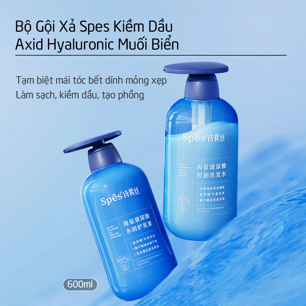 Dầu gội xả SPES Hyaluronic Muối Biển được phát triển dành riêng cho tóc khô nhưng da đầu lại nhiều dầu, giúp cân bằng giữa khả năng làm sạch và độ ẩm. Công thức kết hợp muối biển tinh khiết giúp làm sạch sâu vùng da đầu, cuốn trôi dầu thừa và bụi bẩn mà không làm mất đi độ ẩm tự nhiên. Axit Hyaluronic cấp ẩm cho sợi tóc từ gốc đến ngọn, giữ cho mái tóc mềm mượt và giảm khô xơ. Sản phẩm phù hợp sử dụng hằng ngày, đặc biệt cho người tóc dễ bết nhưng thân tóc lại khô hư tổn do tạo kiểu, nhuộm màu hoặc tác động nhiệt. Thiết kế chai chắc chắn, màu sắc trang nhã và dễ sử dụng trong phòng tắm.