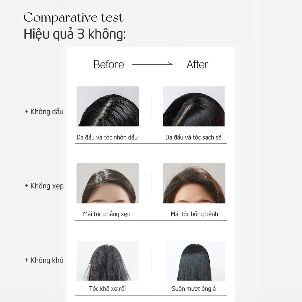 Làm sạch da đầu dầu hiệu quả nhưng giữ lại độ ẩm cần thiết Phục hồi tóc khô xơ và hư tổn từ bên trong Giúp tóc mềm mượt, dễ chải, giảm rối Cân bằng dầu trên da đầu, hạn chế tóc nhanh bết Giúp tóc khỏe, hạn chế gãy rụng do khô và thiếu ẩm Mang lại cảm giác nhẹ da đầu sau khi gội