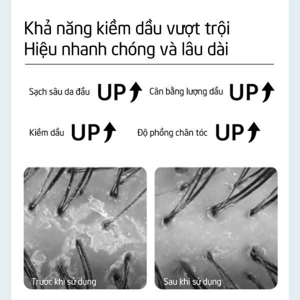 | Công dụng | Kiềm dầu, làm sạch sâu, tạo độ bồng bềnh cho tóc, hỗ trợ giảm rụng tóc |