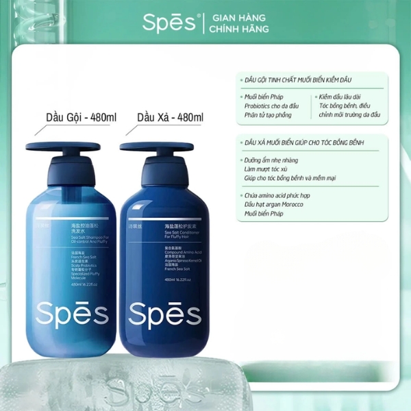 | Tên sản phẩm | Cặp dầu gội và dầu xả SPES Muối Biển Địa Trung Hải |