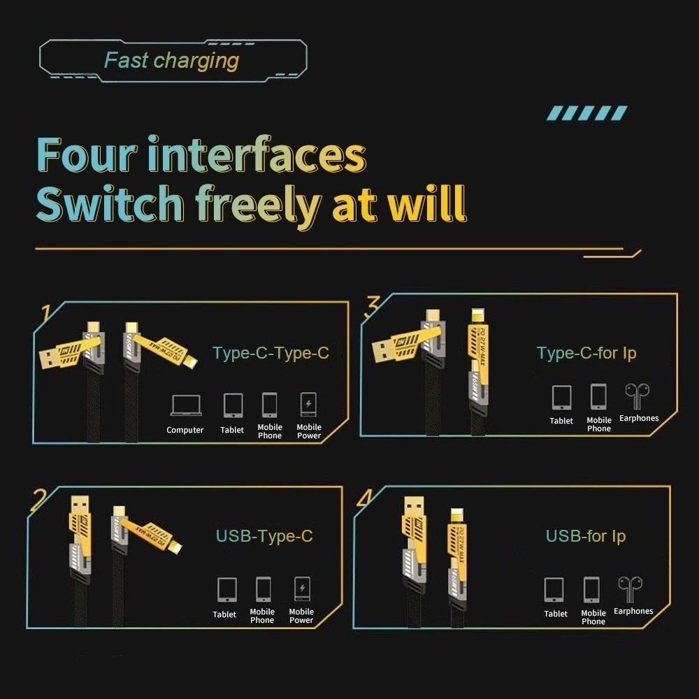 Dây Sạc Siêu Nhanh 4IN1 Chống Gẫy Siêu Bền Tốc Độ Sạc Siêu Nhanh 65W Bảo Hành