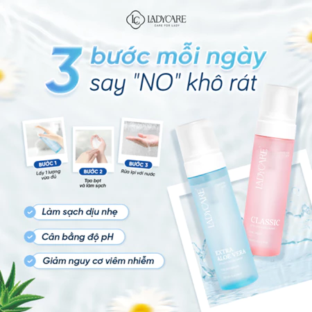 Dung Dịch Vệ Sinh Phụ Nữ Dạng Bọt Cao Cấp Ladycare Extra Aloe Vera là sản phẩm chăm sóc vùng kín được nâng cấp với công thức chứa chiết xuất lô hội tươi mát, mang đến trải nghiệm làm sạch nhẹ nhàng nhưng vô cùng hiệu quả. Với kết cấu bọt mịn, sản phẩm giúp loại bỏ bụi bẩn, mồ hôi và tạp chất một cách êm ái, đồng thời duy trì độ ẩm tự nhiên, ngăn ngừa khô rát và kích ứng. Lô hội nổi tiếng với khả năng làm dịu, cấp ẩm và tái tạo da, giúp vùng kín luôn mềm mại, dễ chịu và giảm cảm giác khó chịu do các yếu tố bên ngoài gây ra.
