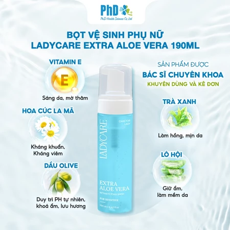Dung Dịch Vệ Sinh Phụ Nữ Dạng Bọt Cao Cấp Ladycare Extra Aloe Vera - 190ml