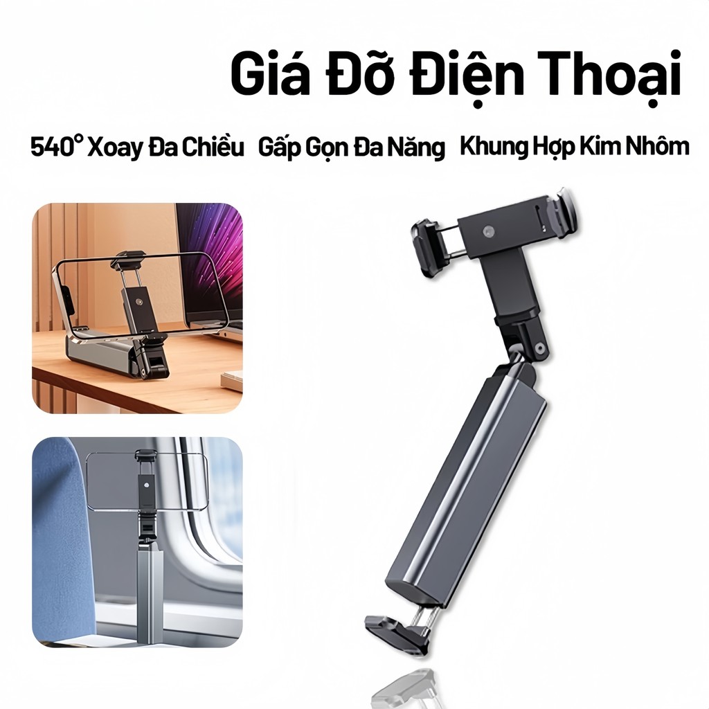 Giá đỡ điện thoại du lịch cầm tay có thể gập lại để bàn điều chỉnh và xoay được thích hợp cho máy bay tàu hỏa và ô tô