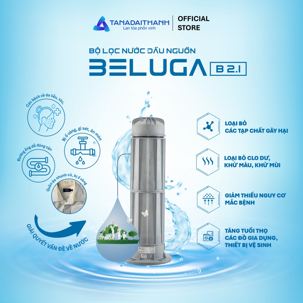 ✅ LƯU Ý: Bộ lọc đầu nguồn Beluga 2.1 khuyến cáo sử dụng cho nước đầu vào là nước máy, và lắp cho nhà mặt đất. Với trường hợp nước đầu vào nhà khách hàng không phải nước máy, hoặc khách hàng ở chung cư, thì nhờ anh/chị liên hệ Shop để được tư vấn thêm và kiểm tra xem bộ lọc Tân Á Đại Thành Beluga có thích hợp với nhà mình hay không.