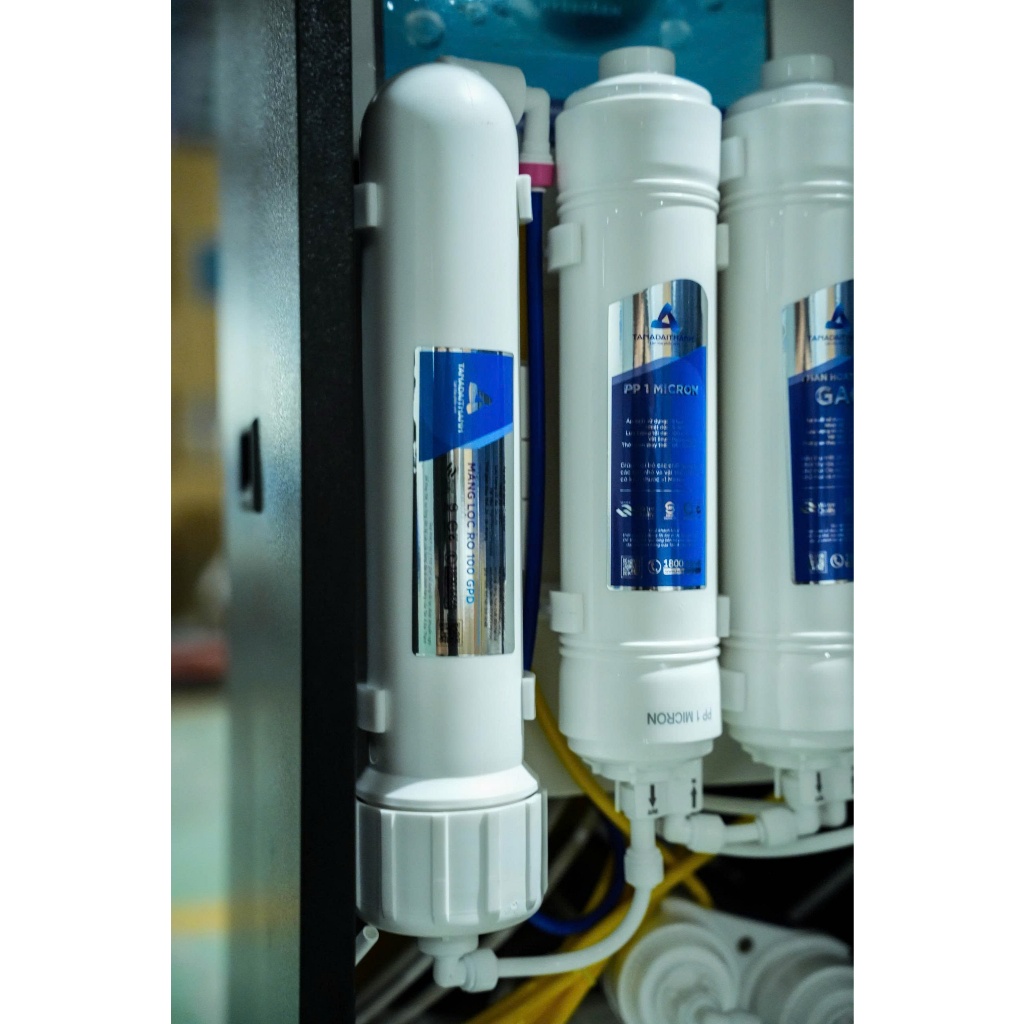 - Số lõi lọc: 11 lõi 1. PP5: Lọc các cặn lớn 2. GAC: Khử mùi, khử hóa chất 3. PP1: Lọc tinh các cặn dư thừa 4. Màng RO 75 GPD Aqualast 5. Hydrogen: Tăng lượng Hydrogen trong nước, giúp cơ thể chống oxy hóa 6. Nano Silver: Nano bạc diệt khuẩn giúp chống tái nhiễm khuẩn 7. Than hoạt tính T33: Khử mùi, giúp vị nước ngon hơn 8. Mineral: Bổ sung khoáng chất cho cơ thể 9. Tourmaline: Tạo ion âm có lợi cho cơ thể và giảm các tác nhân có hại trong nước 10. Siêu lọc UF: Giảm vi khuẩn tích tụ đầu vòi 11. Bóng gốm: Hoạt hóa, chia nhỏ phân tử nước, giúp tế bào dễ hấp thụ Tuổi thọ lõi lọc: Lõi 123 6 tháng, lõi RO 24 tháng, còn lại là 12 tháng Nguồn nước máy lọc nước: Nước sinh hoạt Khối lượng sản phẩm (kg): 24 kg Kích thước sản phẩm: 320 x 400 x 997 mm