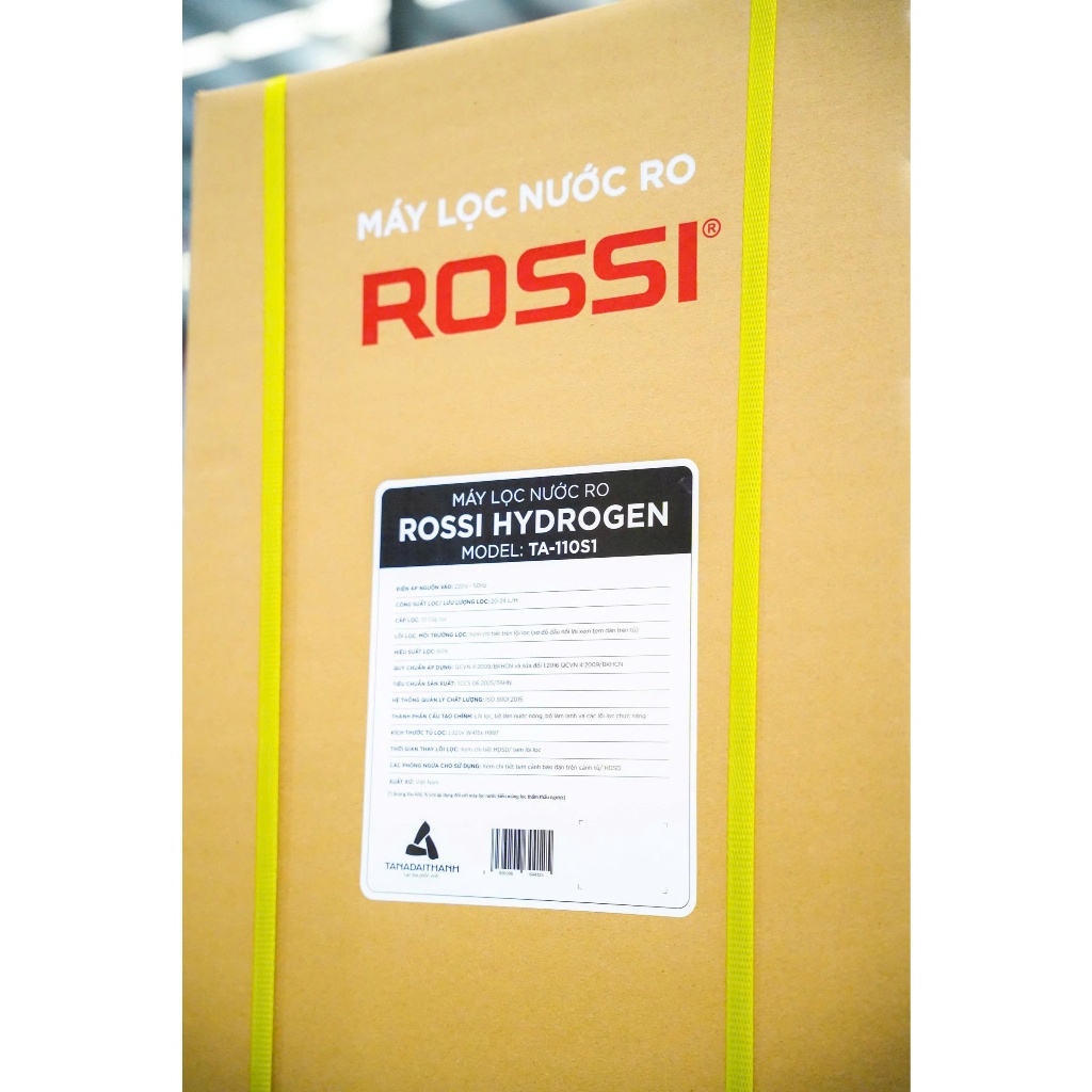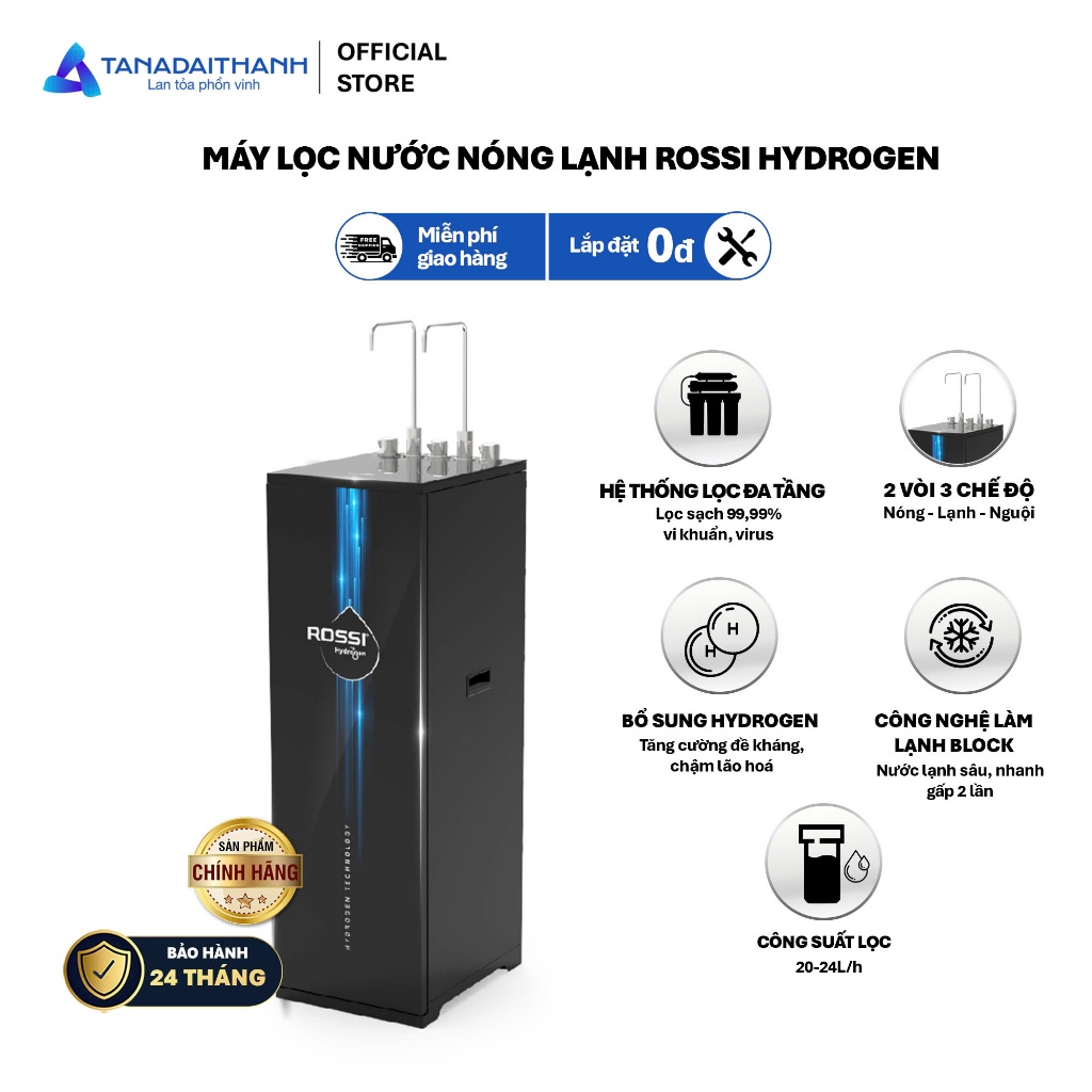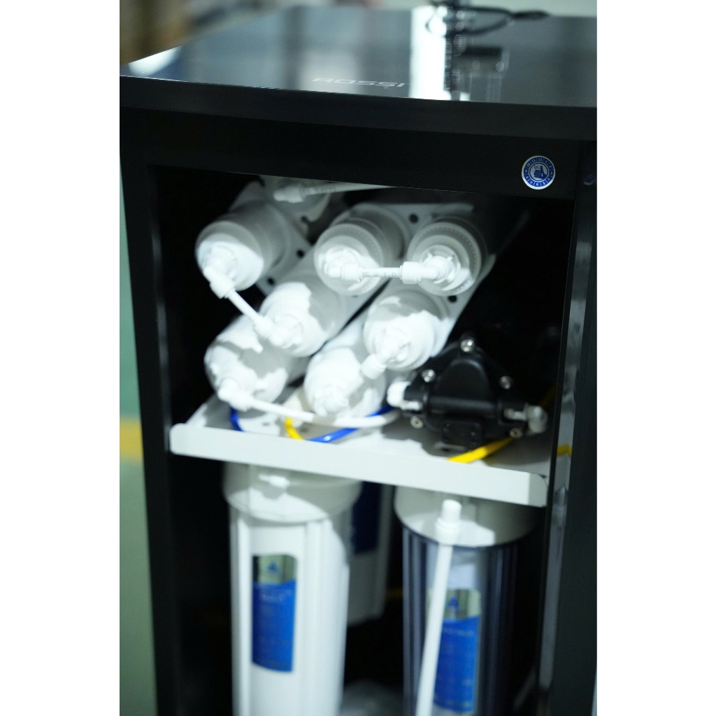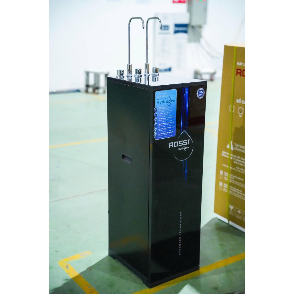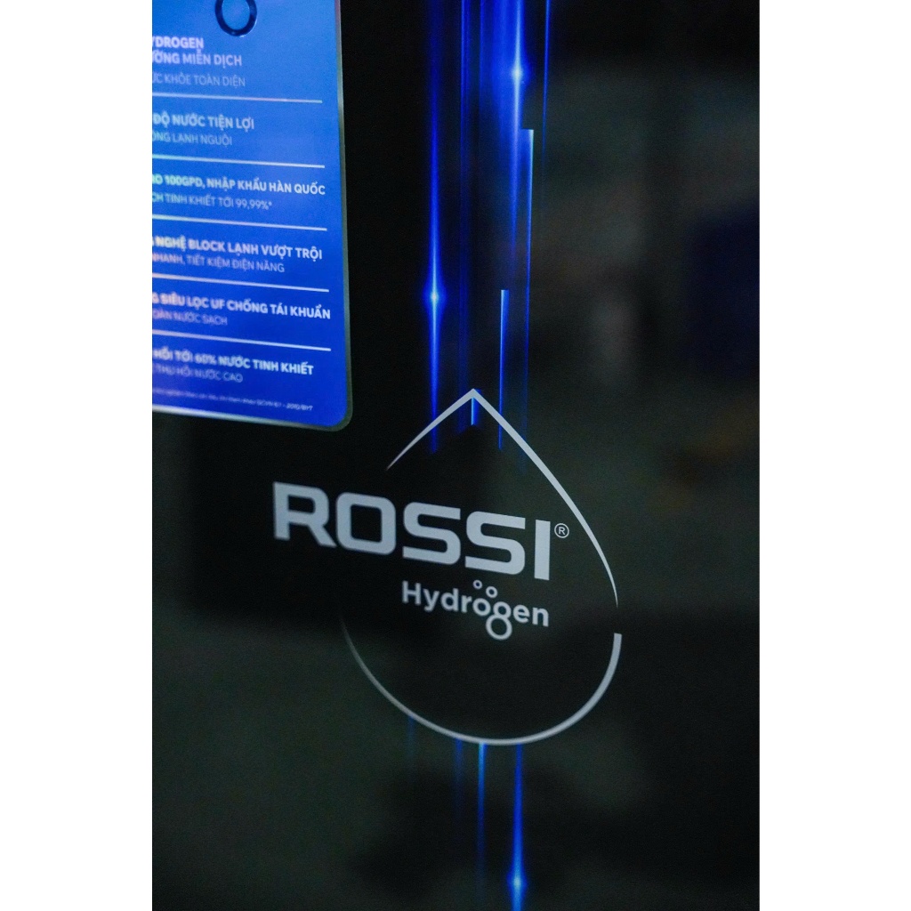 Chỉ số Hydrogen / ORP rất cao trong phân khúc - Thông số kỹ thuật: Loại màng RO và công suất: Màng RO 100 GPD Xuất xứ màng RO: Hàn Quốc Tỷ lệ thu hồi nước tinh khiết ( lọc / thải): 60% Công suất lọc của máy: 20 - 24 L/H Lưu lượng vòi: 1.300 - 1.500 ml/p (khi bình áp đầy) Thể thích bình áp: 8,0 Lít Chất liệu bình áp: Bình áp nhựa 3.2G Loại bơm: Hút sâu Công suất điện máy bơm: 36W Bảng điều khiển: Khóa vặn Số vòi lấy nước: 2 vòi Số khóa vặn lấy nước: 1 khóa vặn Công nghệ in kính: UV, - in màu Chất liệu vỏ tủ: Thép sơn, Kính cường lực, Nhựa Màu sắc: Đen Nhà sản xuất: Rossi Thương hiệu đến từ: Việt Nam Xuất xứ sản phẩm: Việt Nam Năm ra mắt : 2025 Thời gian bảo hành: 36 Tháng Loại máy lọc nước: Máy lọc nước nóng lạnh nguội RO Hydrogen Công nghệ lọc: Công nghệ lọc RO Công suất lọc: 20 lít/giờ Số loại nước: 3 loại nước: Nóng, Lạnh, RO Áp lực nước yêu cầu: >3psi Tuổi thọ lõi lọc: Lõi 123 6 tháng, lõi RO 24 tháng, còn lại là 12 tháng Công suất làm lạnh MLN nóng lạnh: 50W Công suất làm nóng MLN nóng lạnh: 430W Dung tích bình chứa: 6 lít Dung tích bồn lạnh: 1.5 lít Dung tích bồn nóng: 1.5 lít Nguồn nước máy lọc nước nóng lạnh: Nước sinh hoạt Nhiệt độ làm lạnh: 6 - 10°C Nhiệt độ làm nóng: 80 - 90°C Sử dụng gas: R600a Khối lượng sản phẩm (kg): 37 kg Kích thước sản phẩm: 320 x 400 x 997 mm