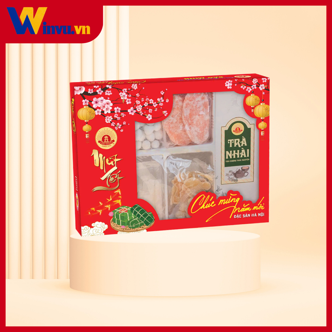 Hộp quà Mứt Thập Cẩm Đặc Biệt và Trà Bảo Minh mang đến sự kết hợp tinh tế giữa hương vị Tết truyền thống và sự trang trọng của quà biếu cao cấp.