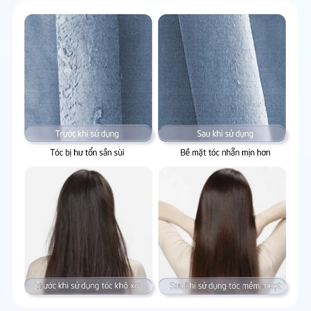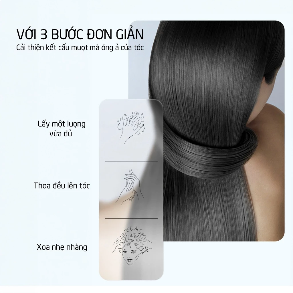Làm mềm tóc, giúp tóc mượt hơn rõ rệt Hỗ trợ phục hồi tóc khô, yếu, chẻ ngọn Cải thiện độ bóng và độ đàn hồi cho mái tóc Tăng độ ẩm và dưỡng chất giúp tóc chắc khỏe Giúp tóc dễ chải, giảm gãy rụng khi chải và sấy