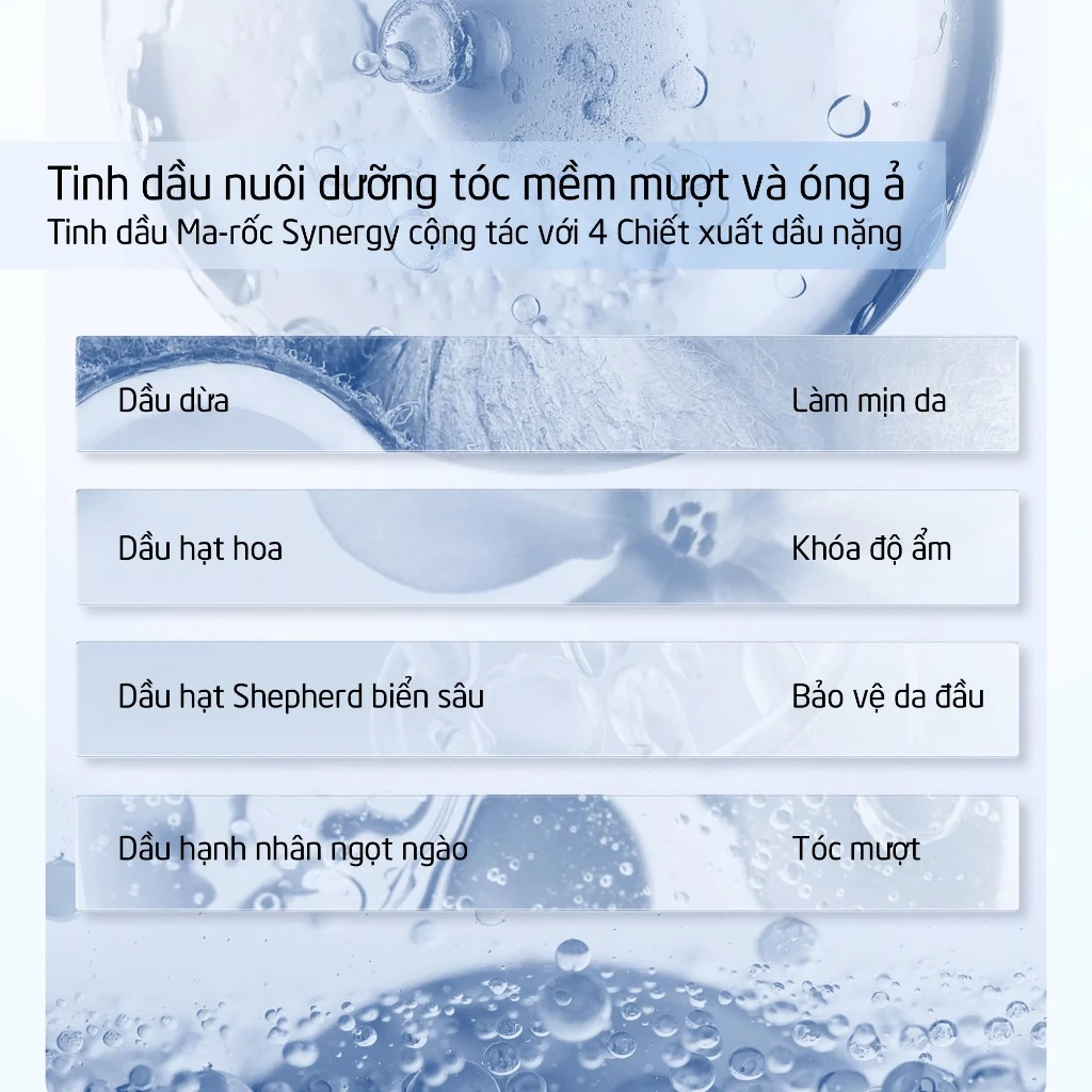 Tinh dầu dưỡng tóc giúp bổ sung độ ẩm và phục hồi độ mềm mượt Chiết xuất tự nhiên hỗ trợ nuôi dưỡng tóc khỏe hơn Hoạt chất phục hồi sợi tóc hư tổn Không chứa paraben và chất gây kích ứng phổ biến