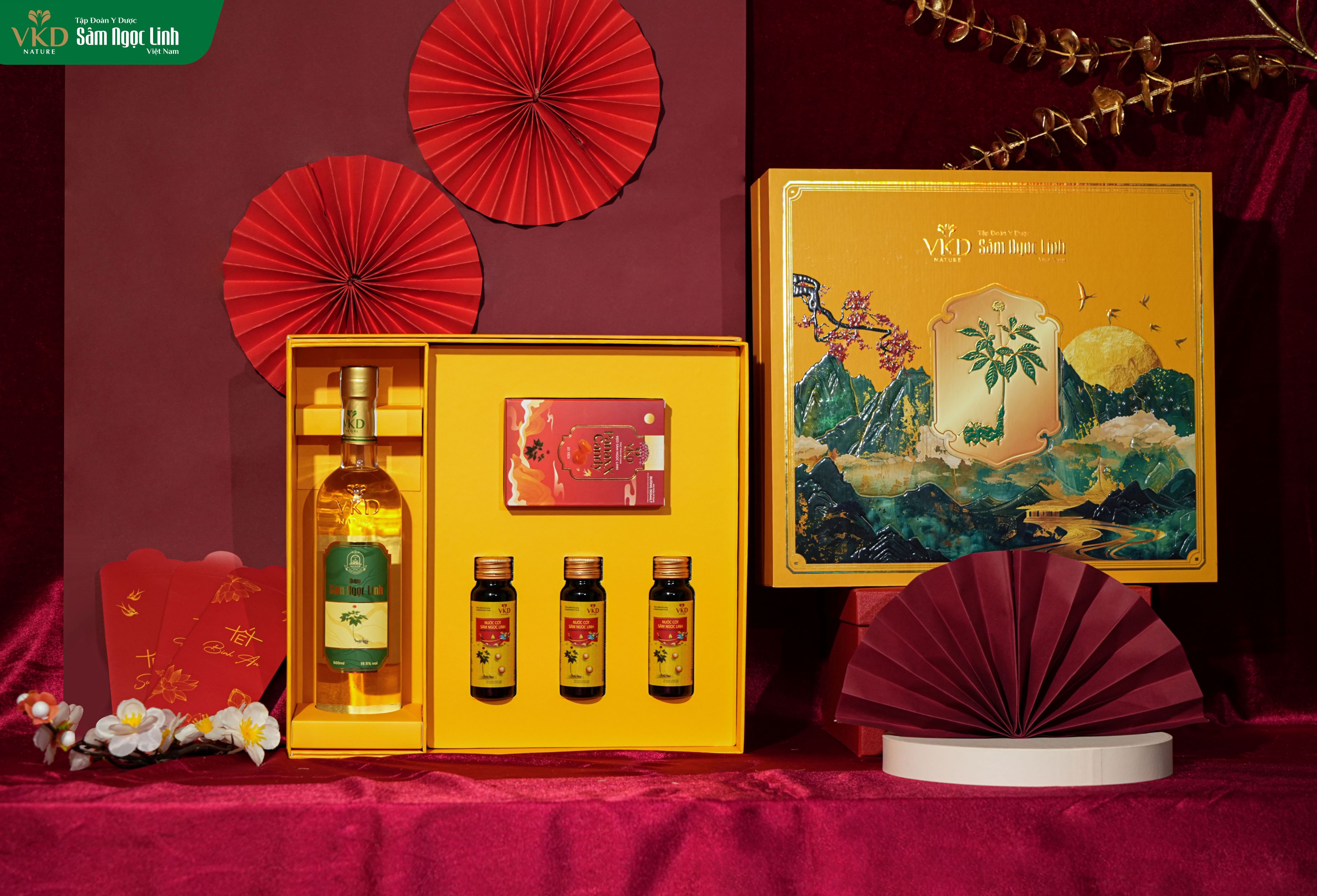 Set quà tặng Sâm Ngọc Linh được đóng trong hộp quà cao cấp với bao bì vàng sang trọng, tạo cảm giác lịch sự và đẳng cấp khi biếu tặng. Sản phẩm phù hợp sử dụng trong các dịp lễ Tết, thăm hỏi sức khỏe, tri ân khách VIP, đối tác hoặc dành tặng người thân. Bộ quà mang thương hiệu Sâm Ngọc Linh VKD, xuất xứ Việt Nam, đảm bảo hàng mới 100% và đầy đủ tem, nhãn. Đây là lựa chọn thể hiện sự tinh tế, uy tín và chu đáo dành cho người nhận trong mọi hoàn cảnh