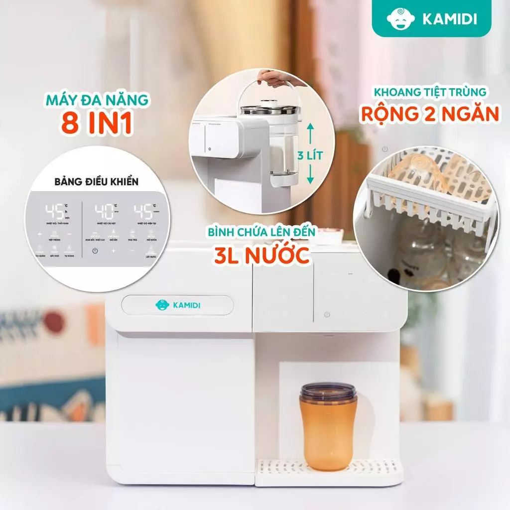 Thông tin sản phẩm: - Tên sản phẩm: Máy đa năng tiệt trùng UV tích hợp đun nước pha sữa Kamidi Lux 1